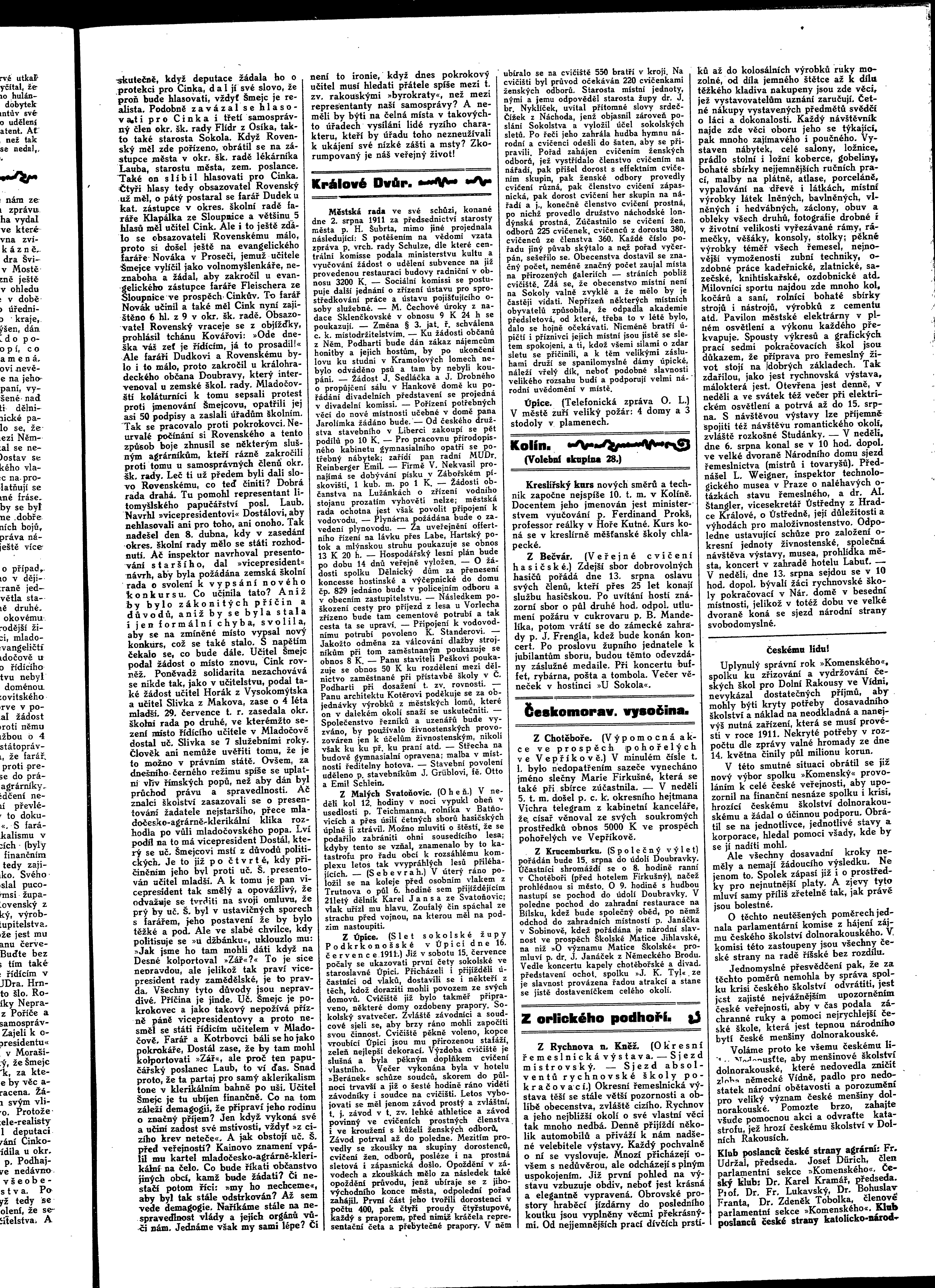 * Datum vydání výtisku: 9.8.1911 Číslo výtisku: 95 - 96 Poznámky k výtisku: ranní vydání