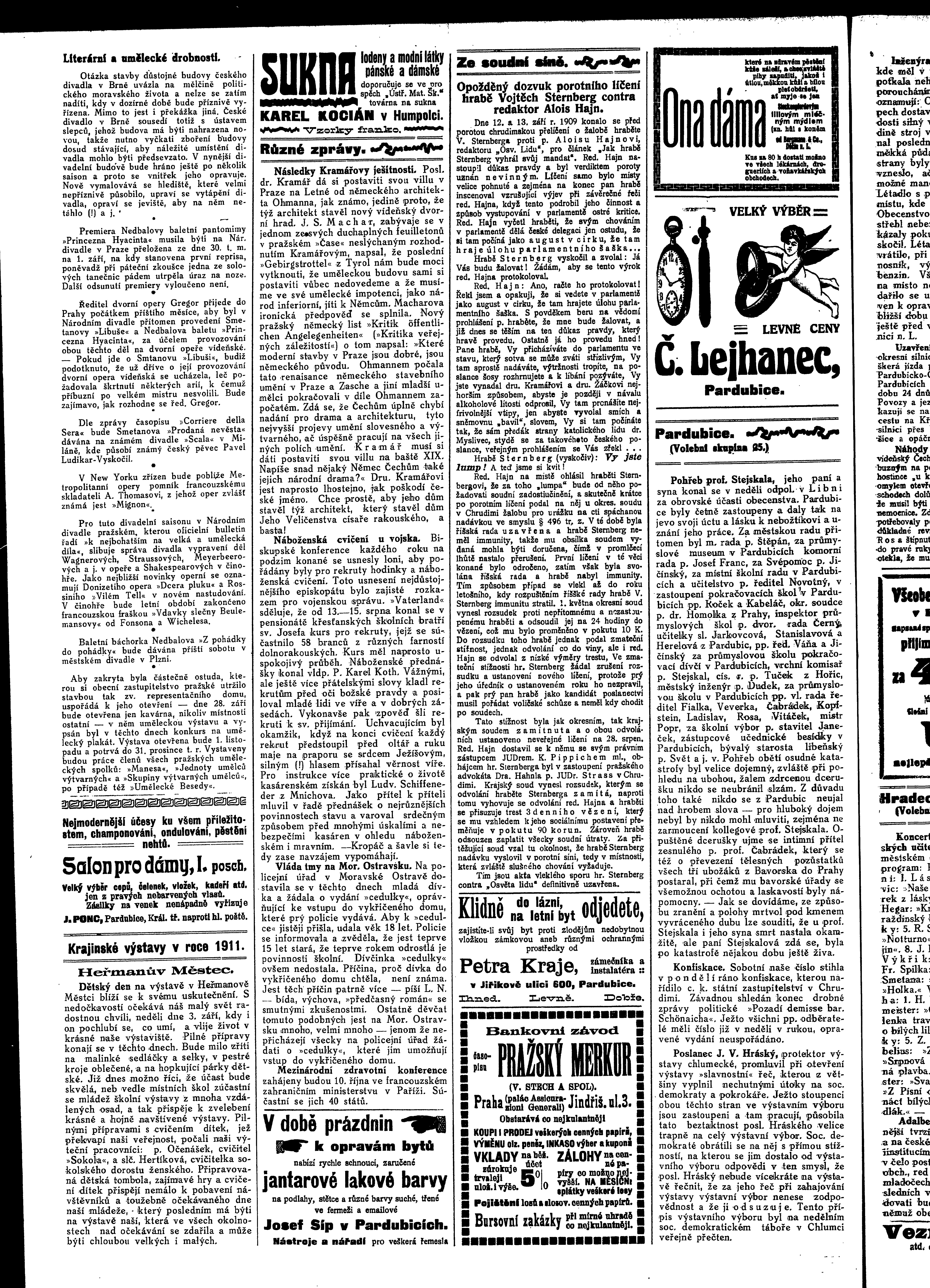 * Datum vydání výtisku: 29.8.1911 Číslo výtisku: 105 Poznámky k výtisku: ranní vydání