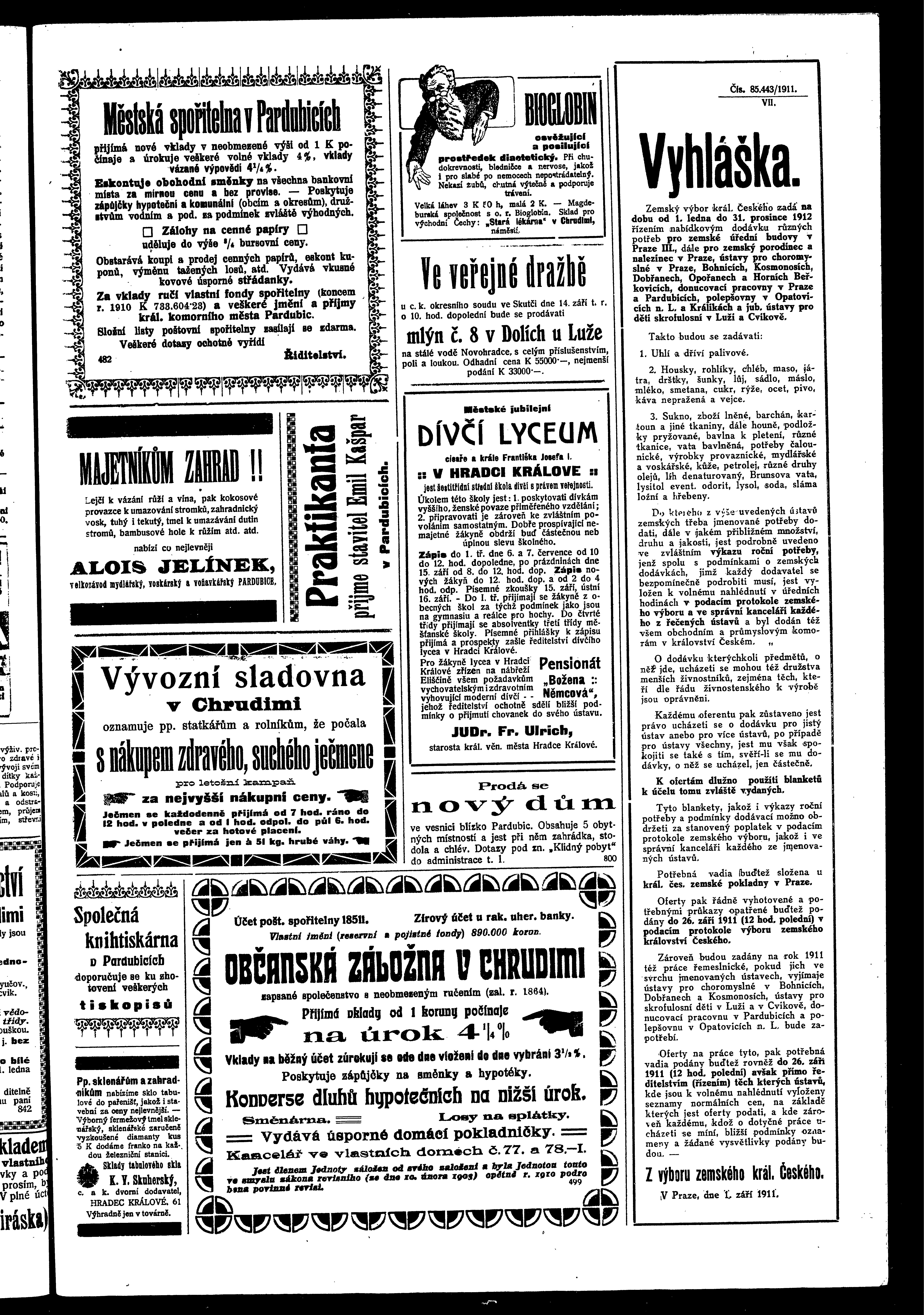 * Datum vydání výtisku: 9.9.1911 Číslo výtisku: 109 - 110 Poznámky k výtisku: ranní vydání