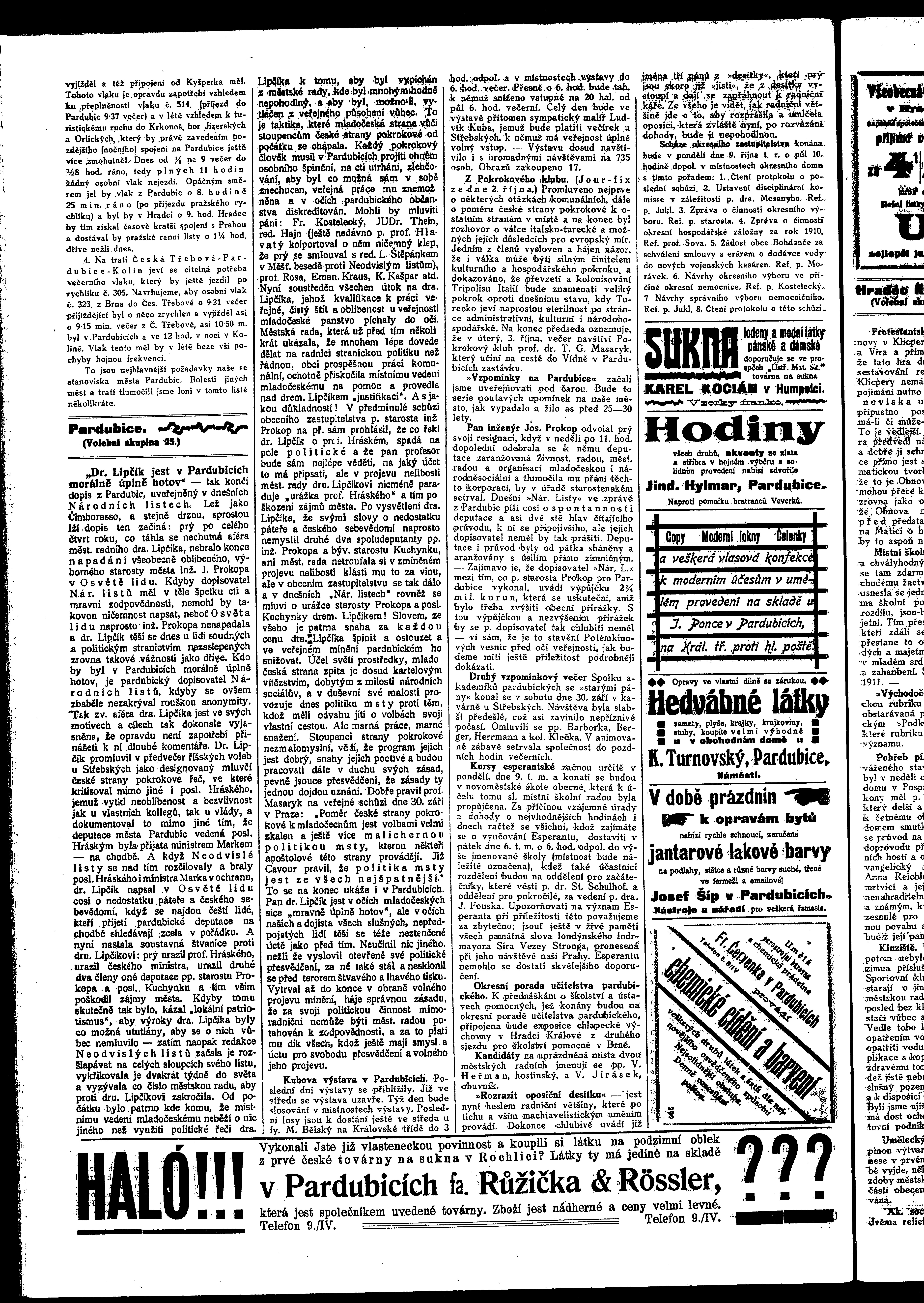 * Datum vydání výtisku: 3.10.1911 Číslo výtisku: 120 Poznámky k výtisku: ranní vydání
