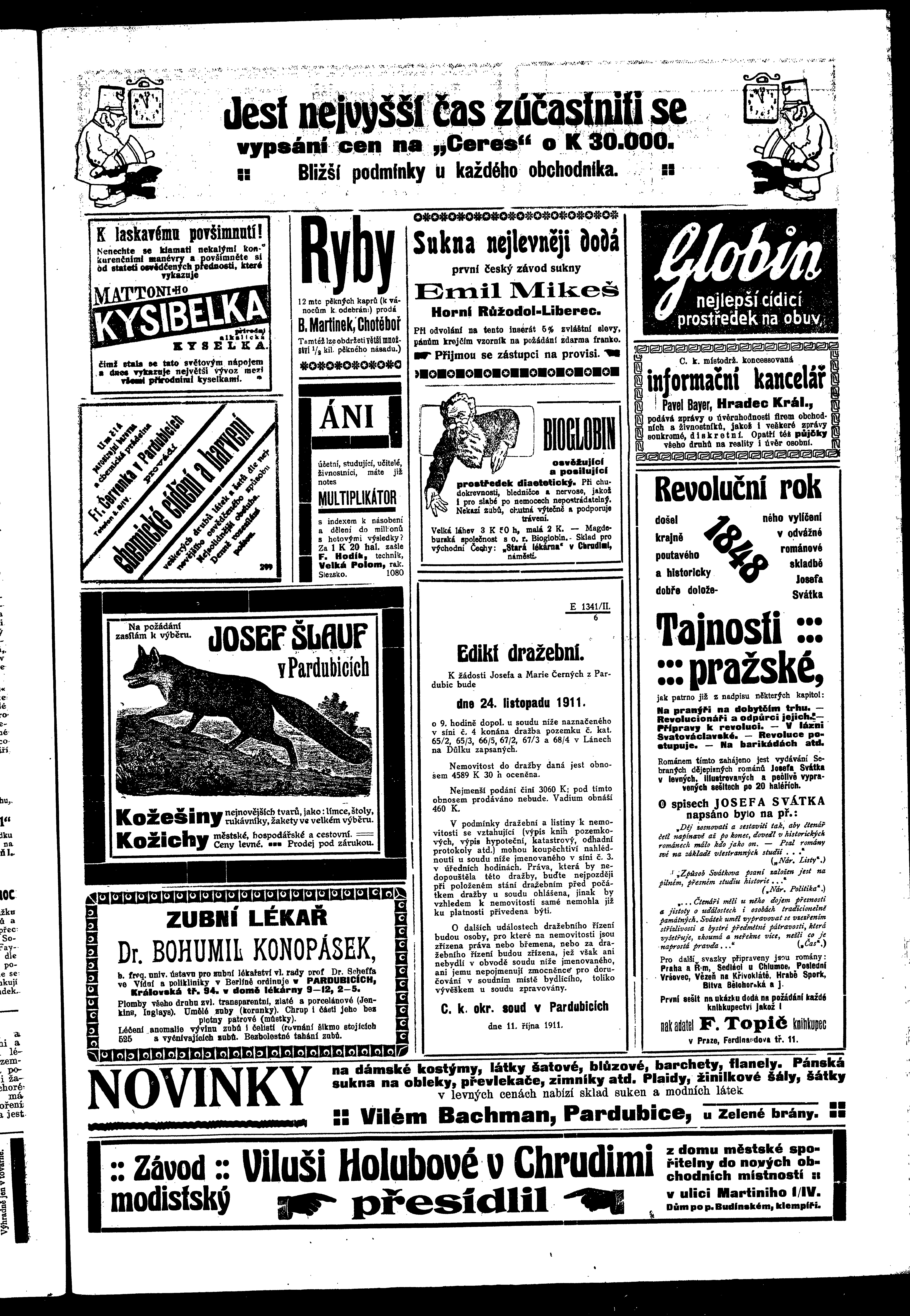 * Datum vydání výtisku: 4.11.1911 Číslo výtisku: 133 - 134 Poznámky k výtisku: ranní vydání