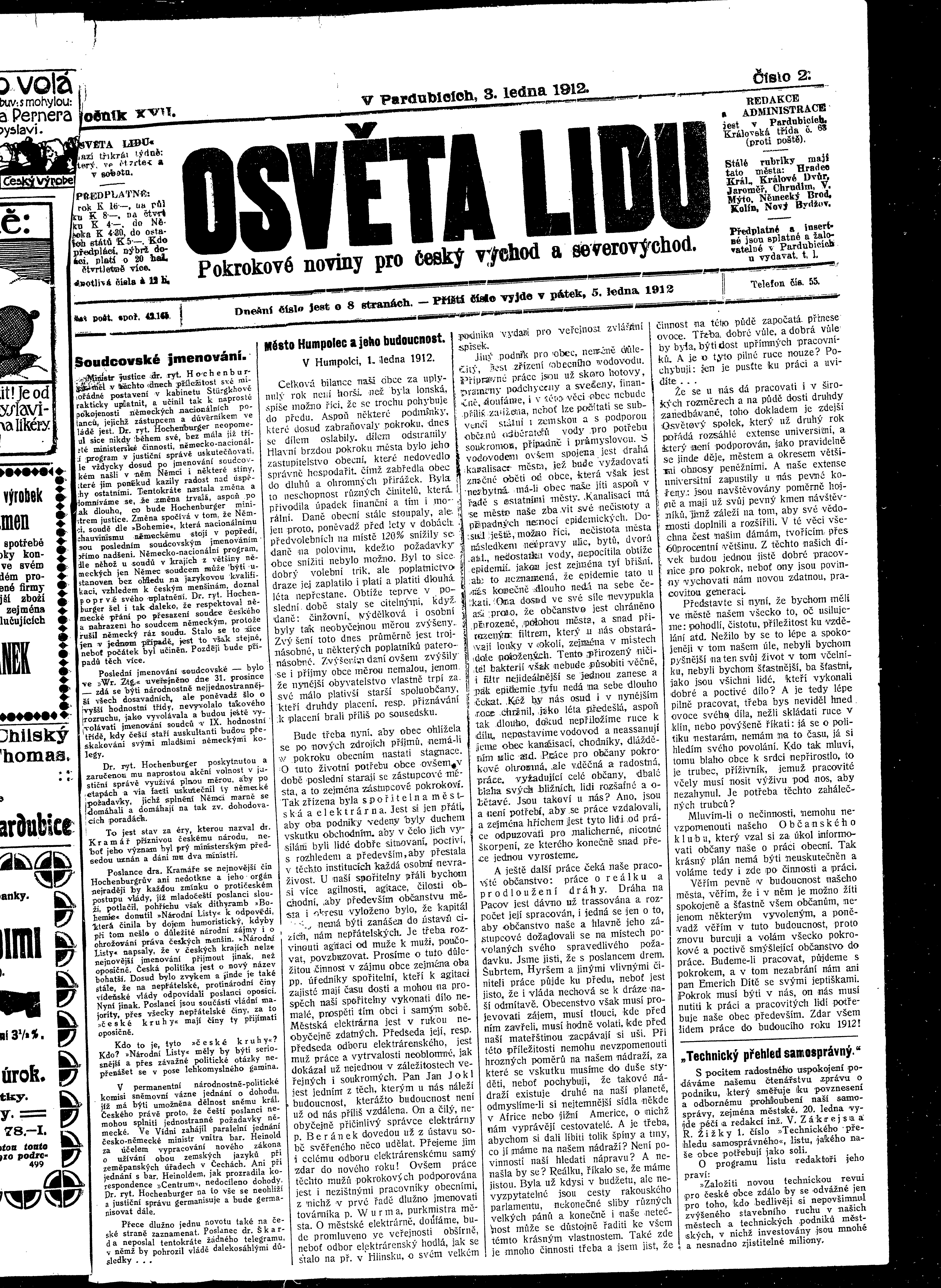 * Datum vydání výtisku: 3.1.1912 Číslo výtisku: 2 Poznámky k výtisku: ranní vydání
