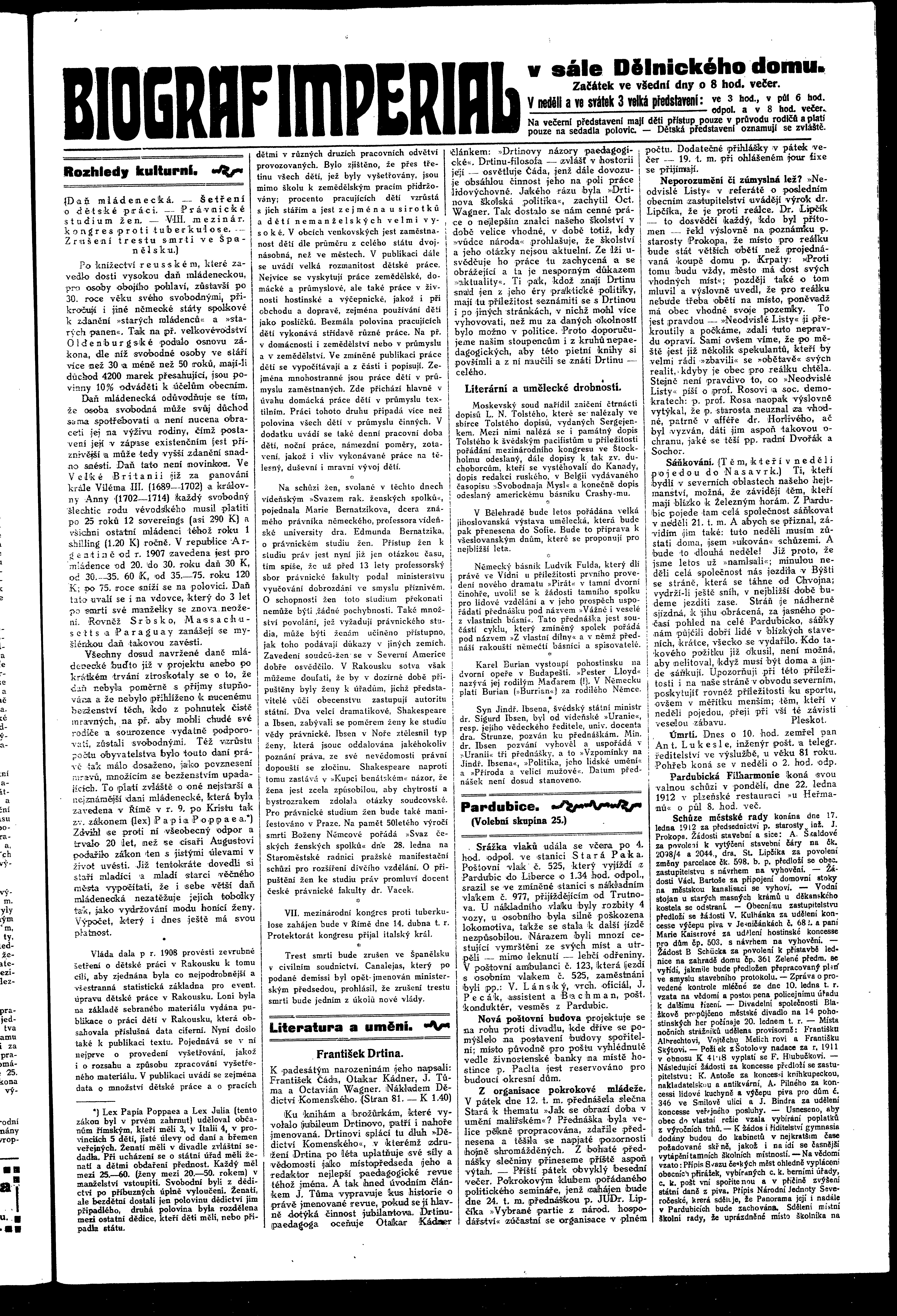 * Datum vydání výtisku: 18.1.1912 Číslo výtisku: 8 Poznámky k výtisku: ranní vydání