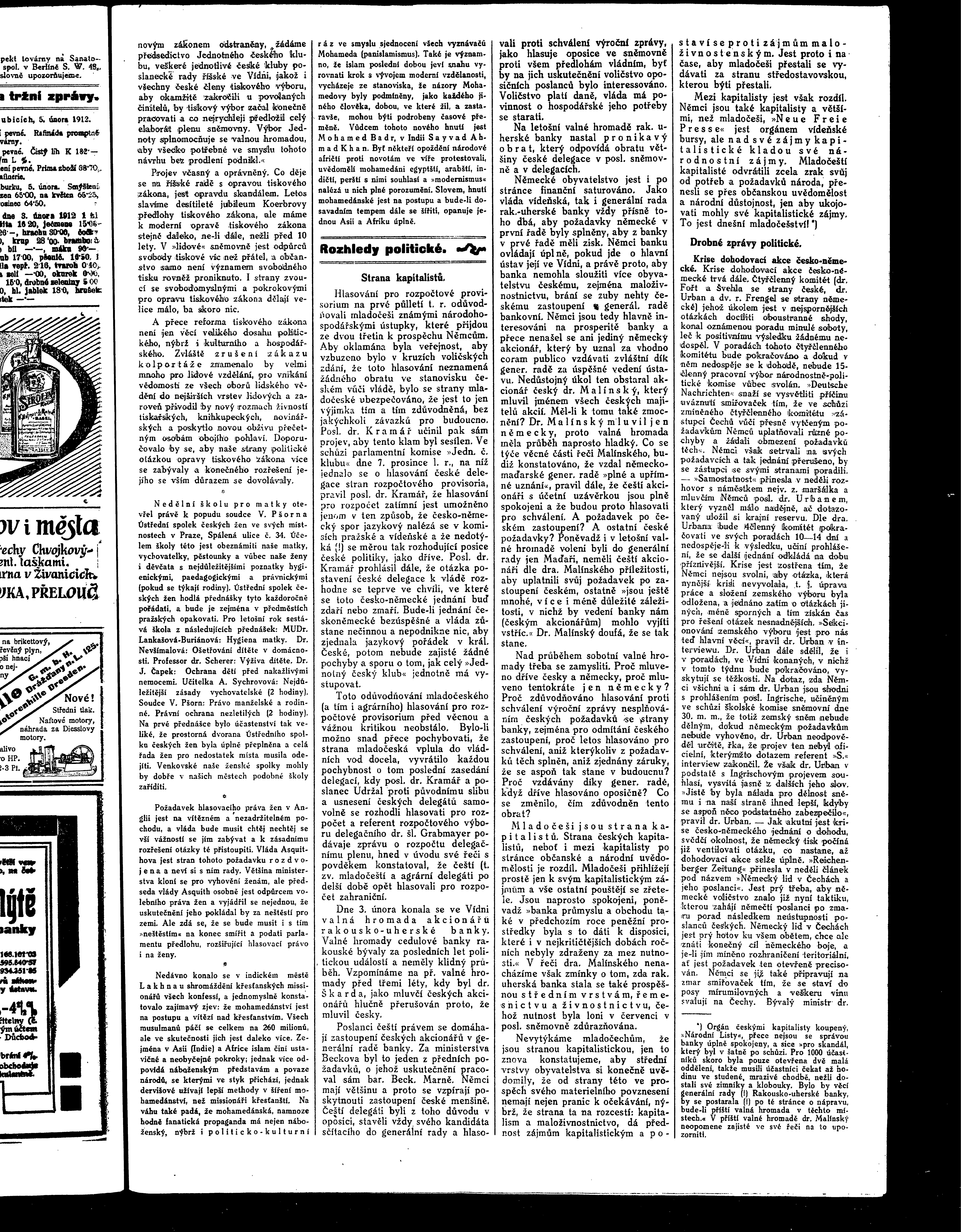 * Datum vydání výtisku: 6.2.1912 Číslo výtisku: 16 Poznámky k výtisku: ranní vydání
