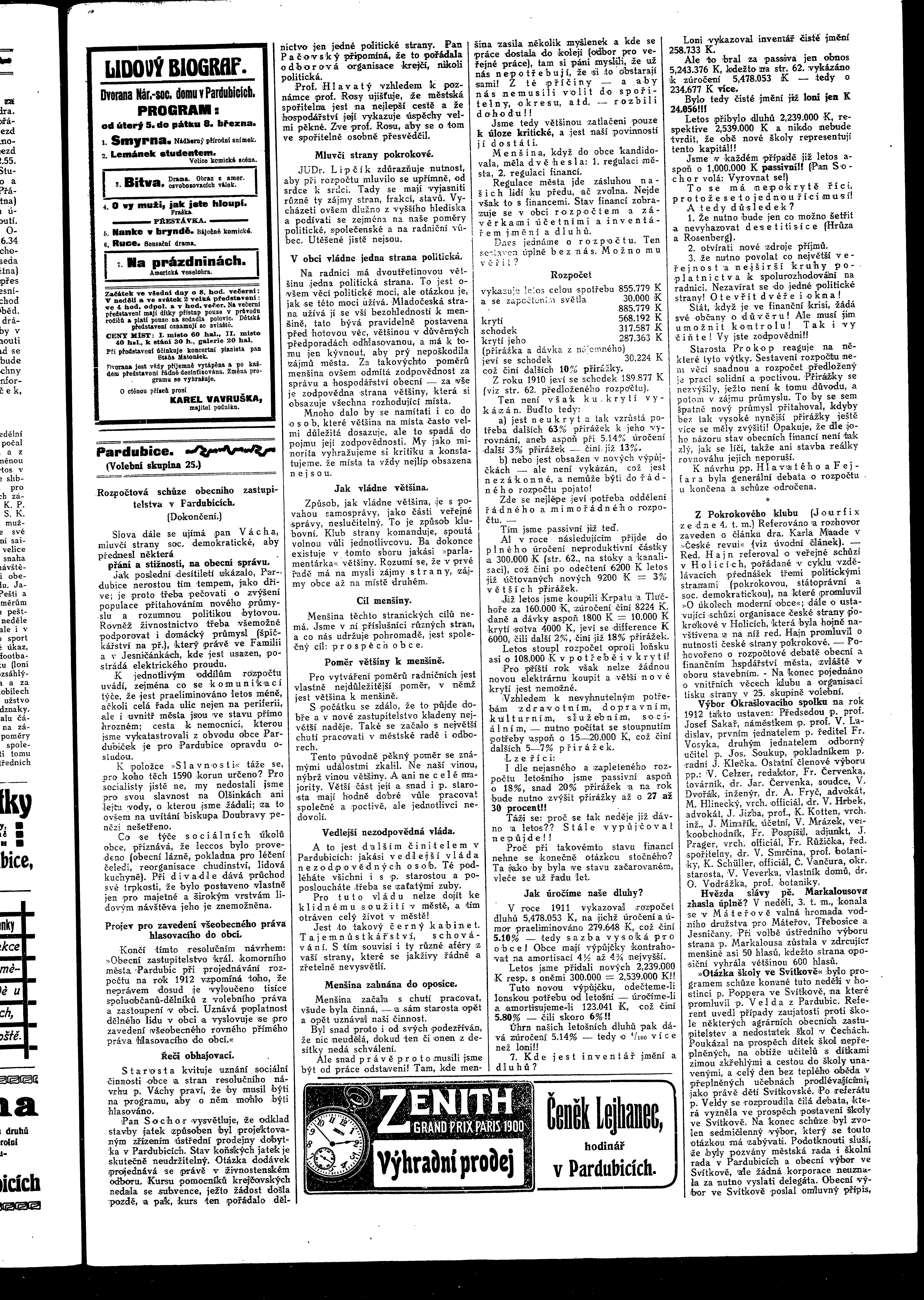 * Datum vydání výtisku: 5.3.1912 Číslo výtisku: 28 Poznámky k výtisku: ranní vydání
