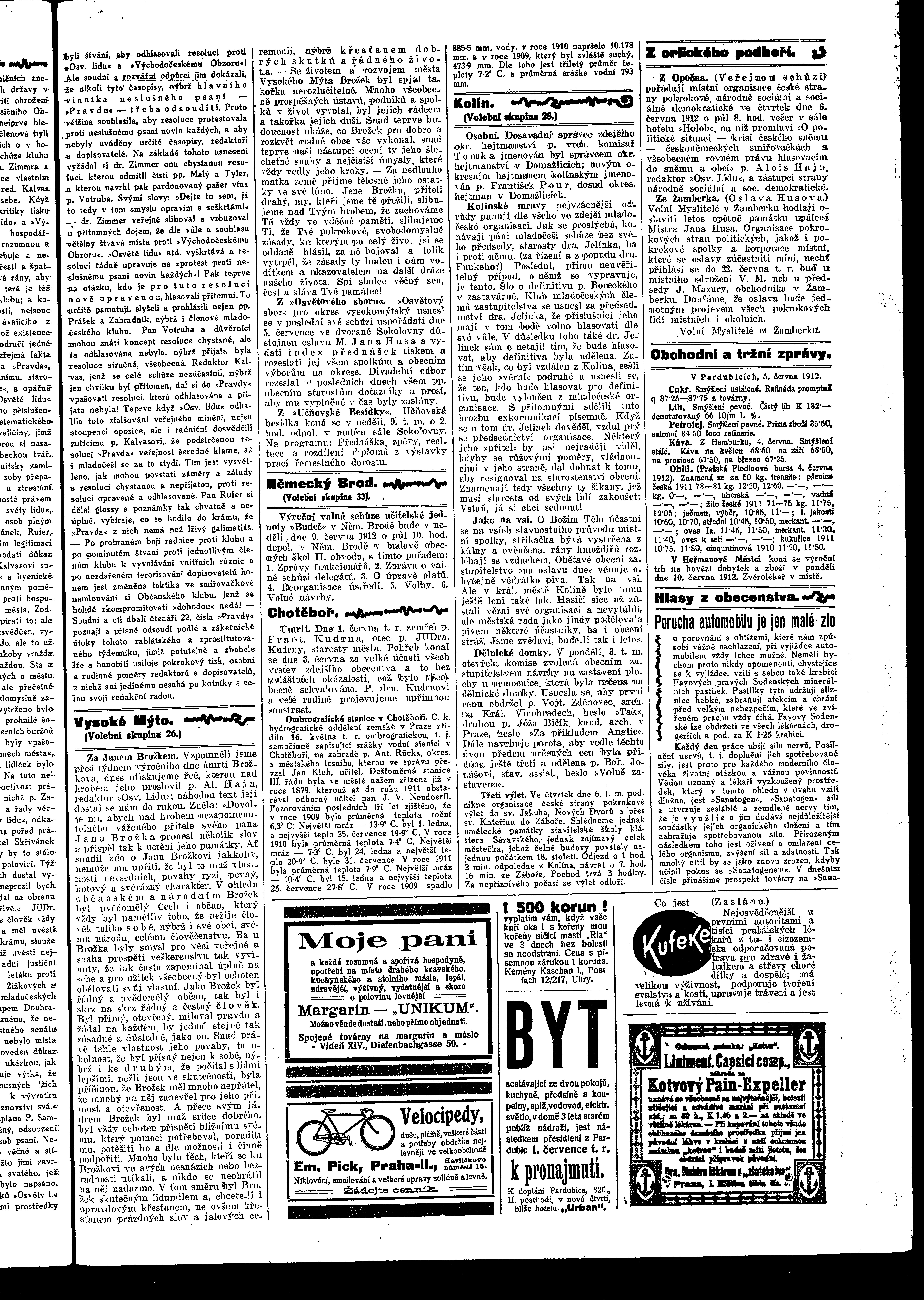 * Datum vydání výtisku: 5.6.1912 Číslo výtisku: 67 - 68 Poznámky k výtisku: ranní vydání