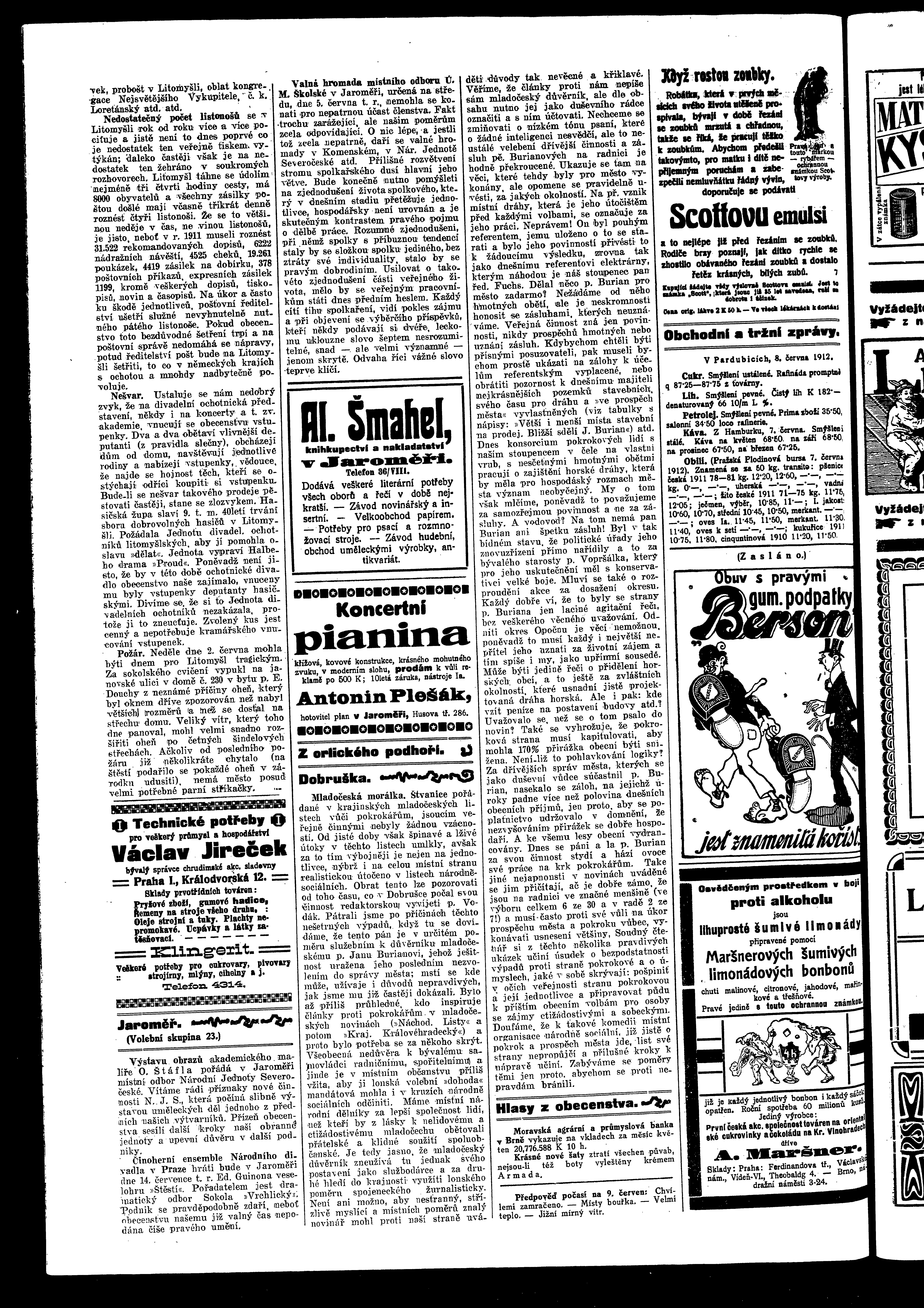 * Datum vydání výtisku: 8.6.1912 Číslo výtisku: 69 Poznámky k výtisku: ranní vydání