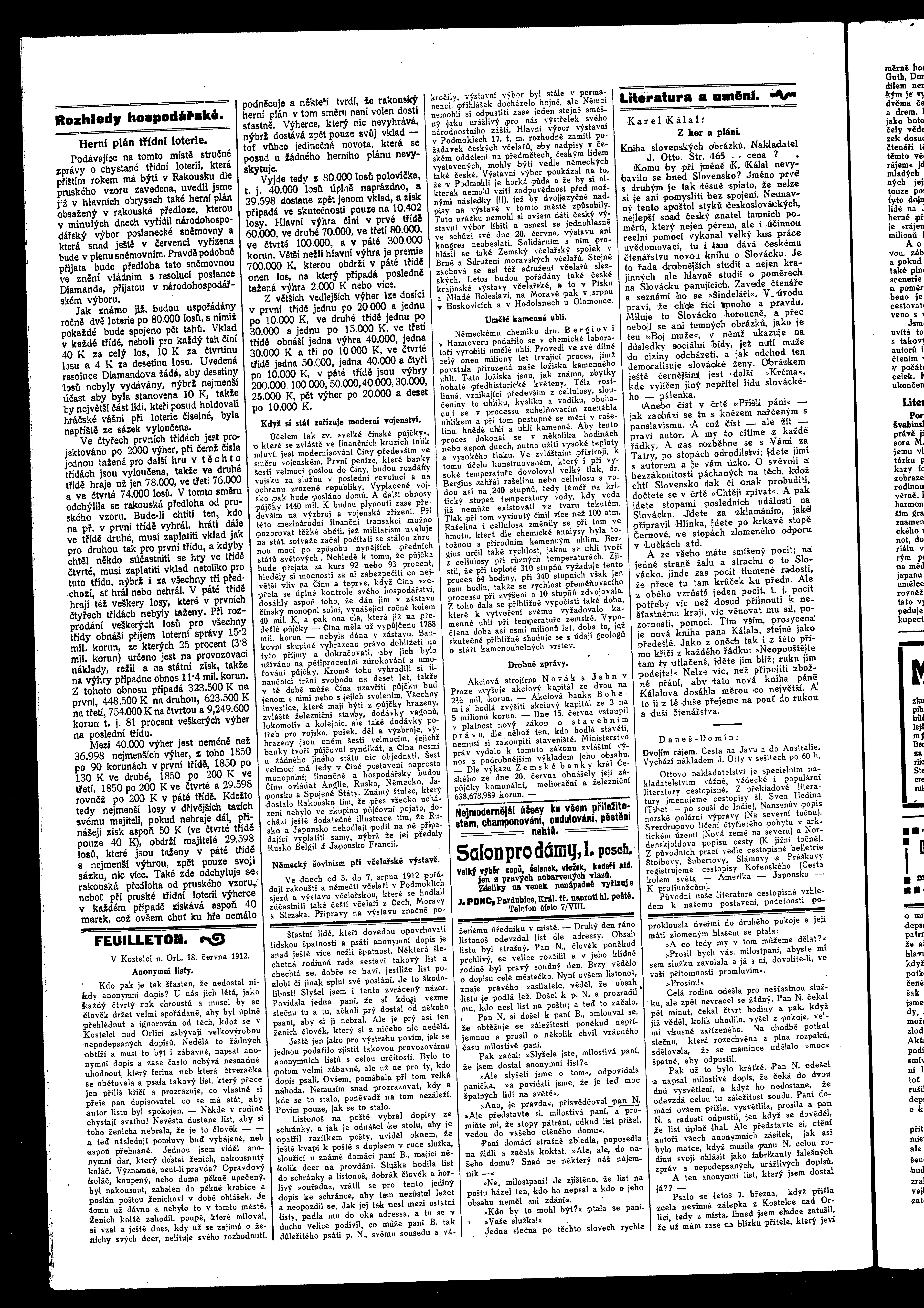 * Datum vydání výtisku: 25.6.1912 Číslo výtisku: 76 Poznámky k výtisku: ranní vydání