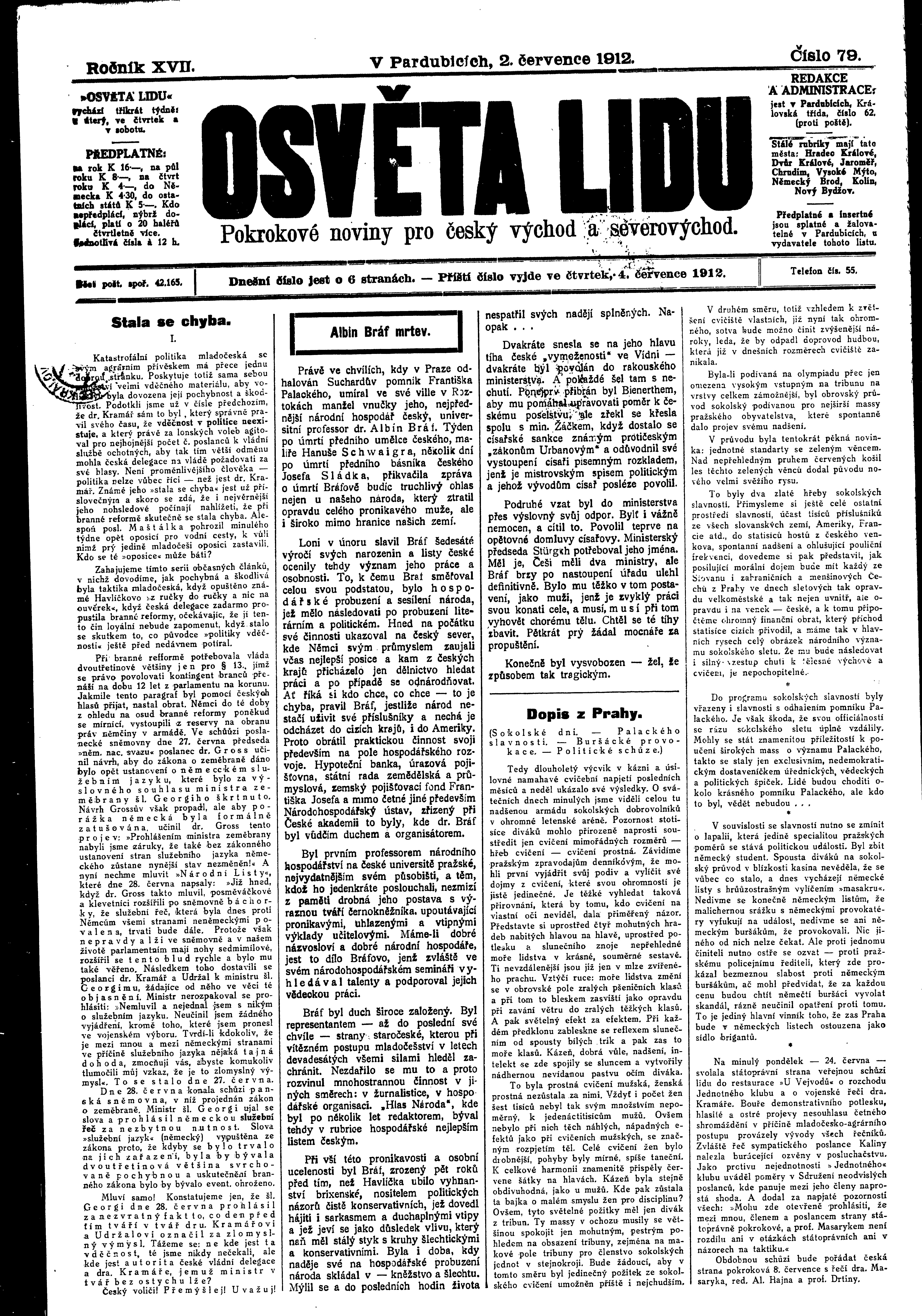 * Datum vydání výtisku: 2.7.1912 Číslo výtisku: 79 Poznámky k výtisku: ranní vydání