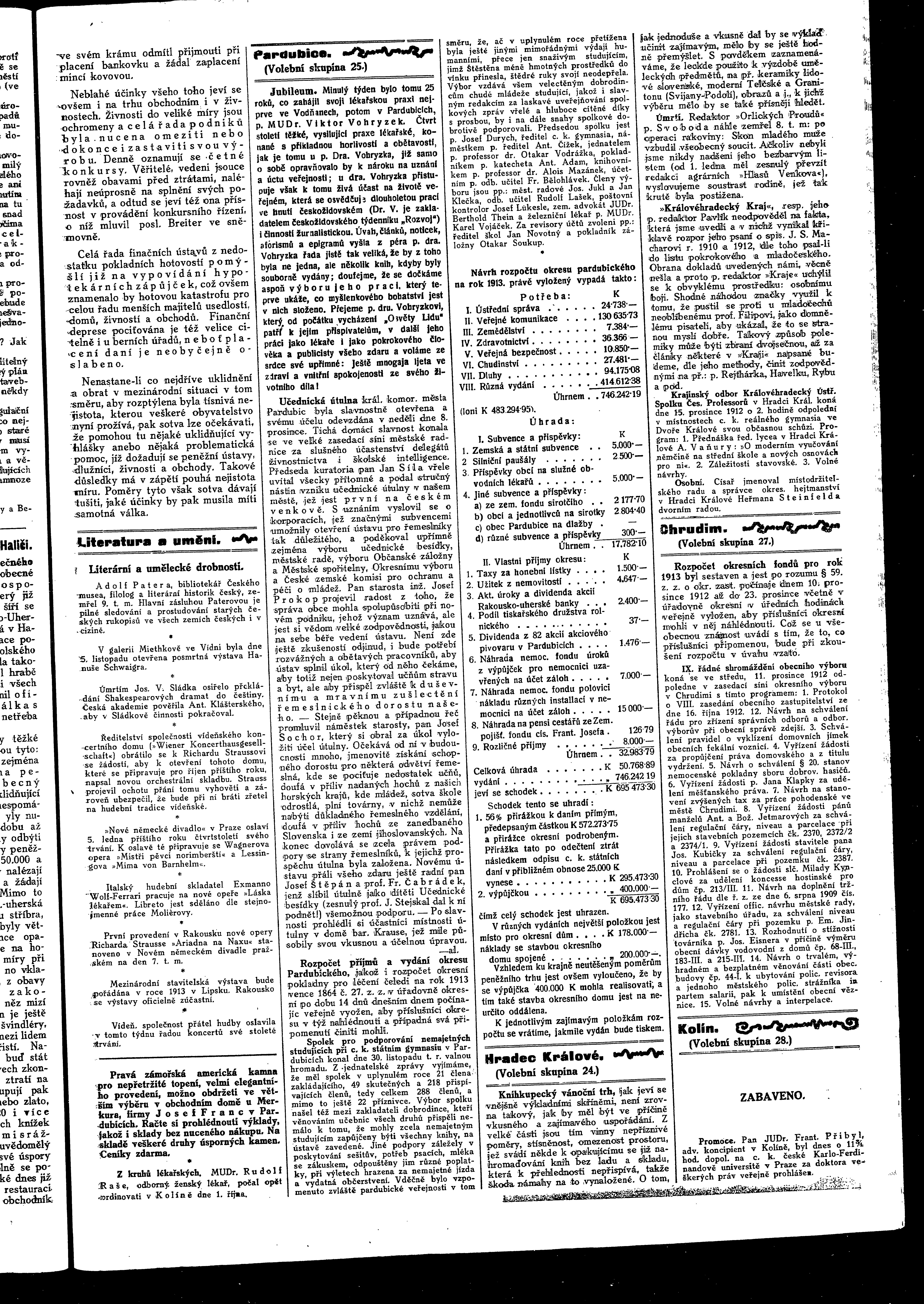 * Datum vydání výtisku: 10.12.1912 Číslo výtisku: 147 Poznámky k výtisku: ranní vydání
