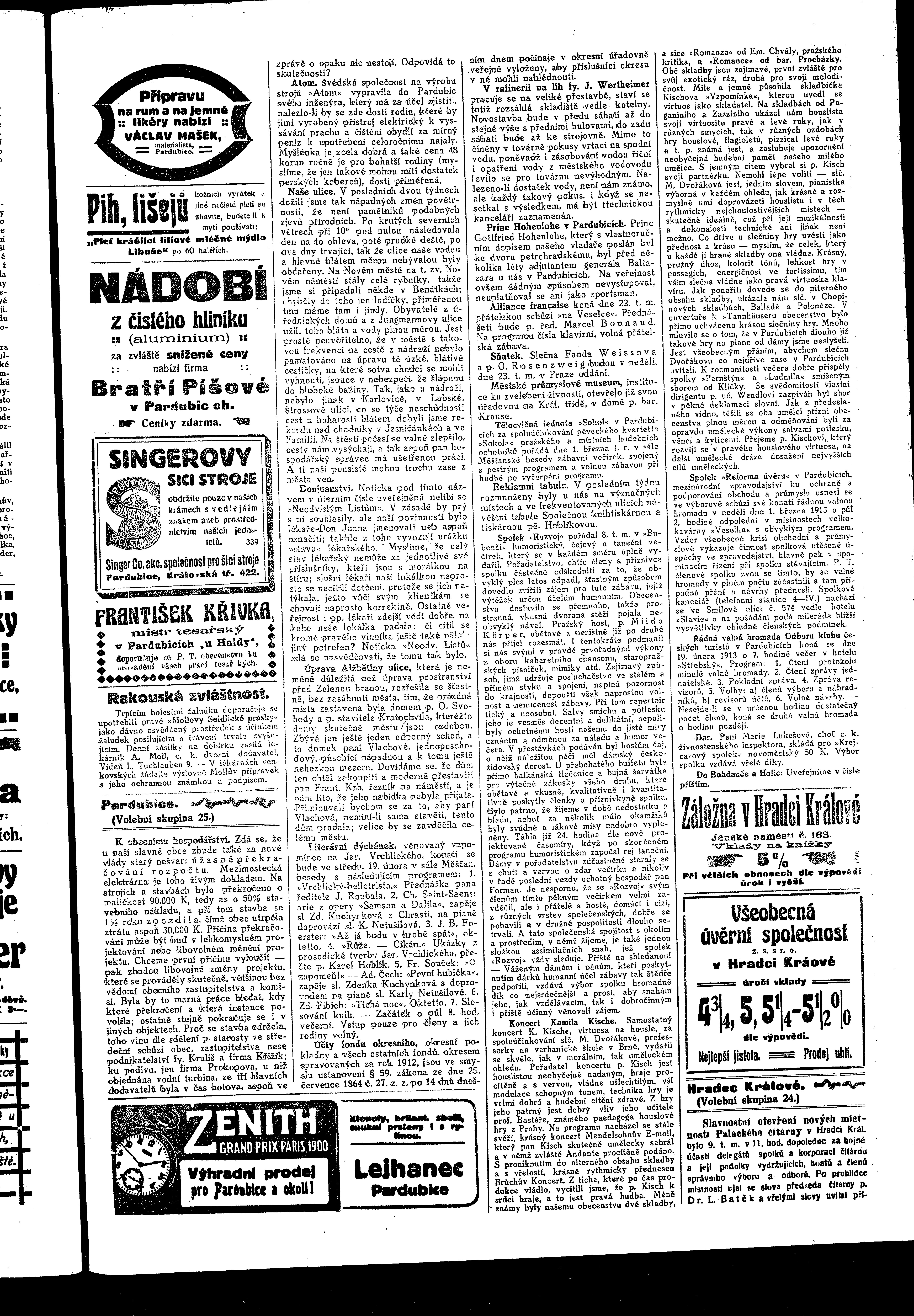 * Datum vydání výtisku: 15.2.1913 Číslo výtisku: 19 Poznámky k výtisku: ranní vydání