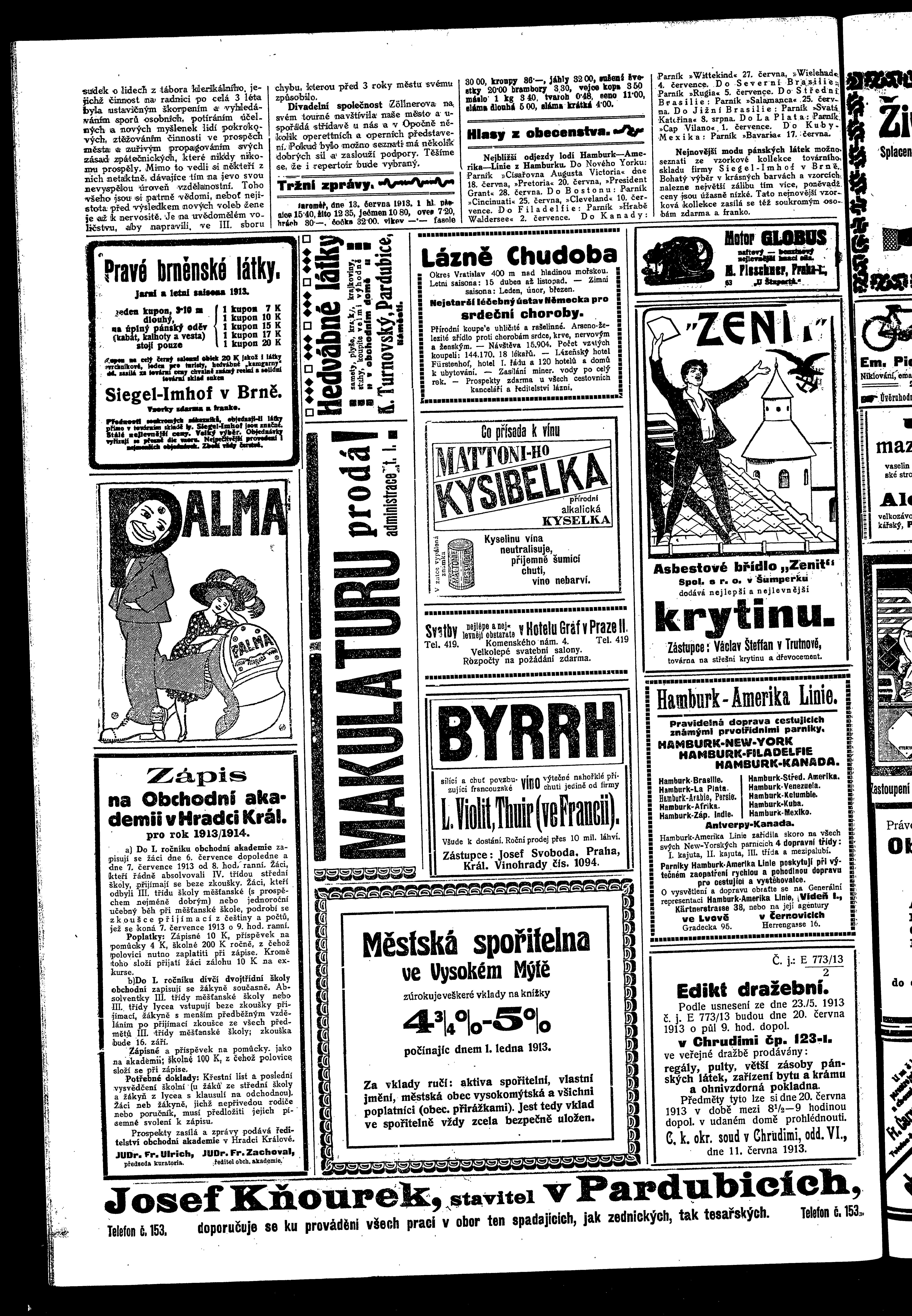 * Datum vydání výtisku: 14.6.1913 Číslo výtisku: 69 Poznámky k výtisku: ranní vydání