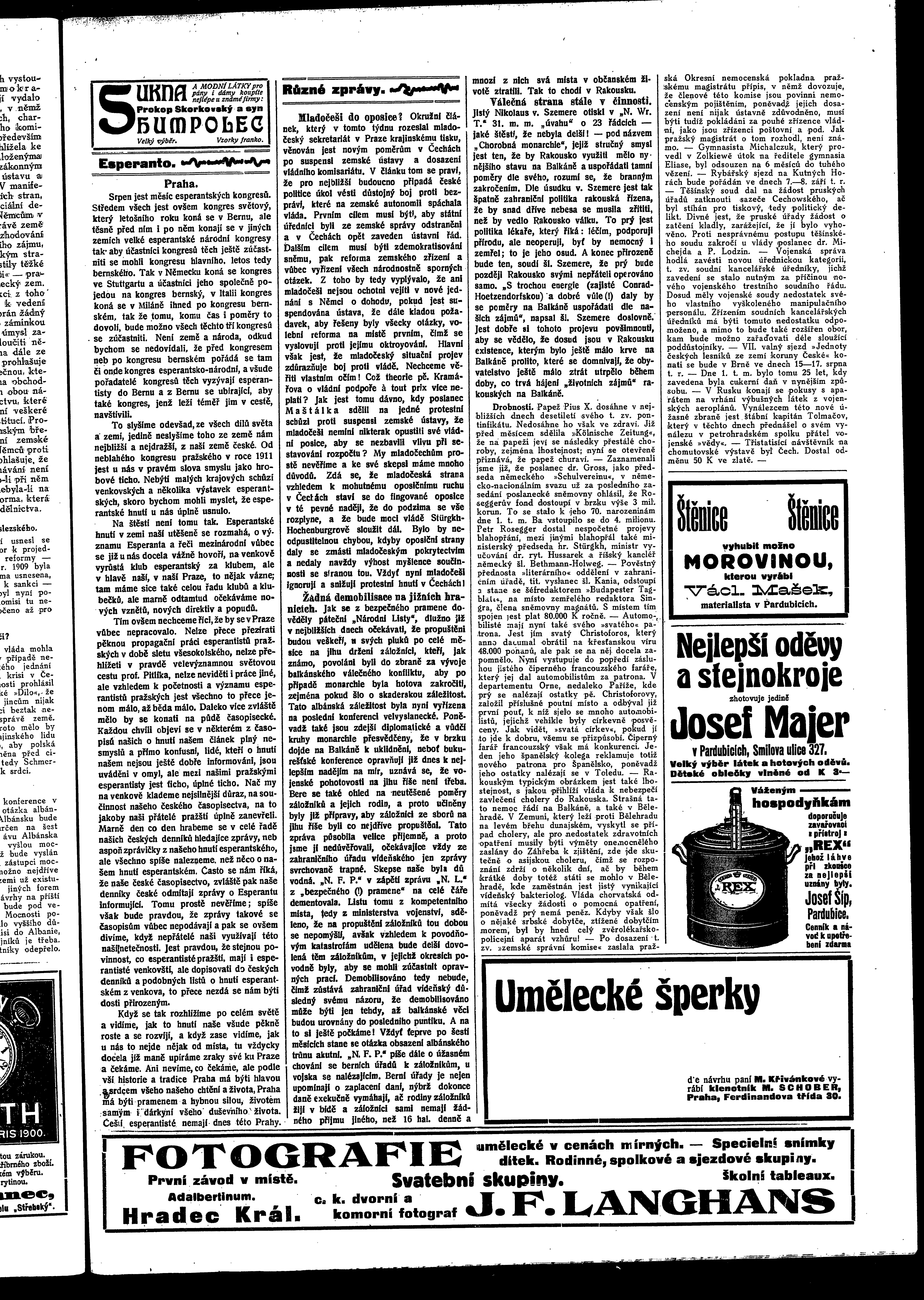 * Datum vydání výtisku: 2.8.1913 Číslo výtisku: 90 Poznámky k výtisku: ranní vydání