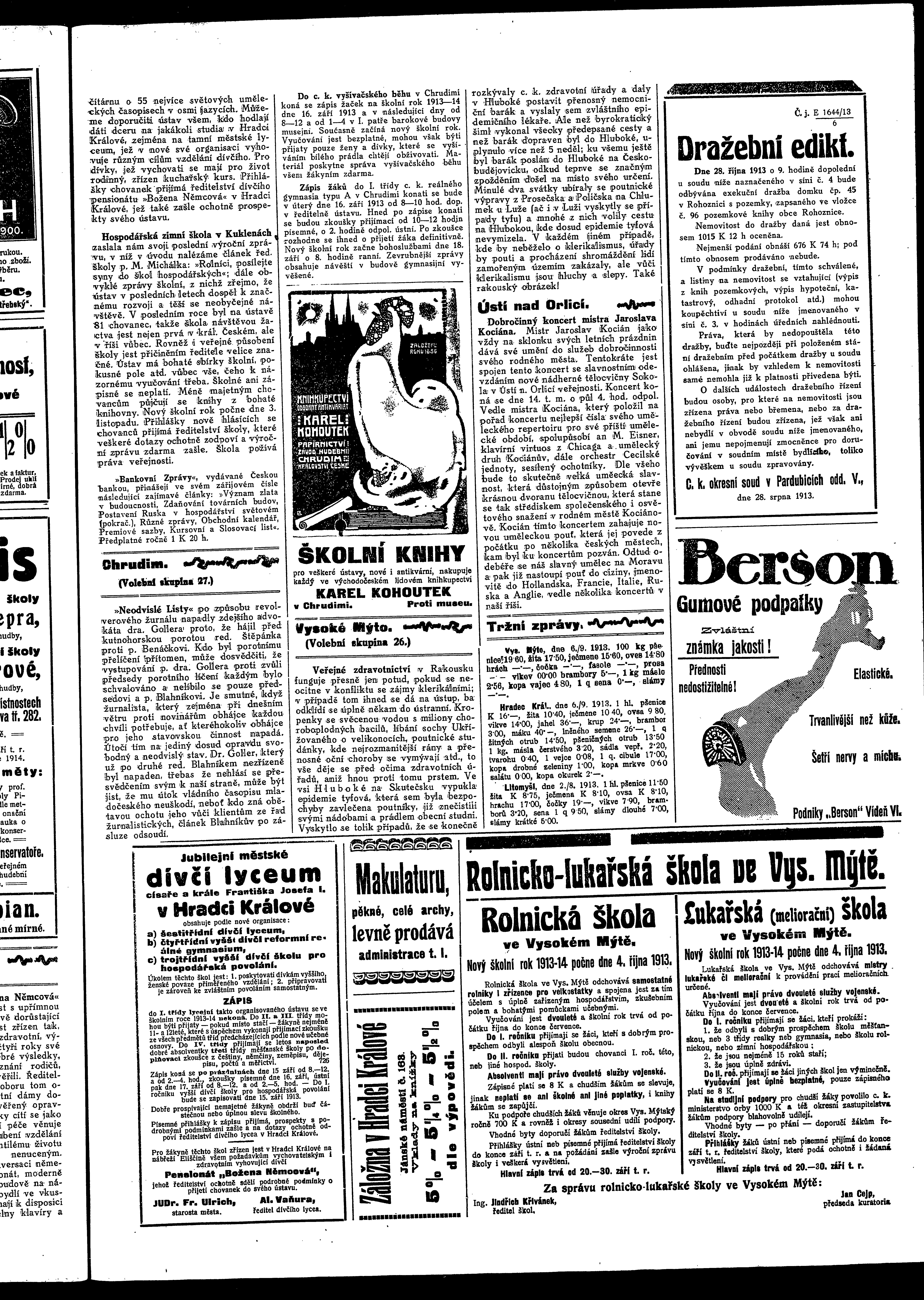 * Datum vydání výtisku: 10.9.1913 Číslo výtisku: 106 - 107 Poznámky k výtisku: ranní vydání