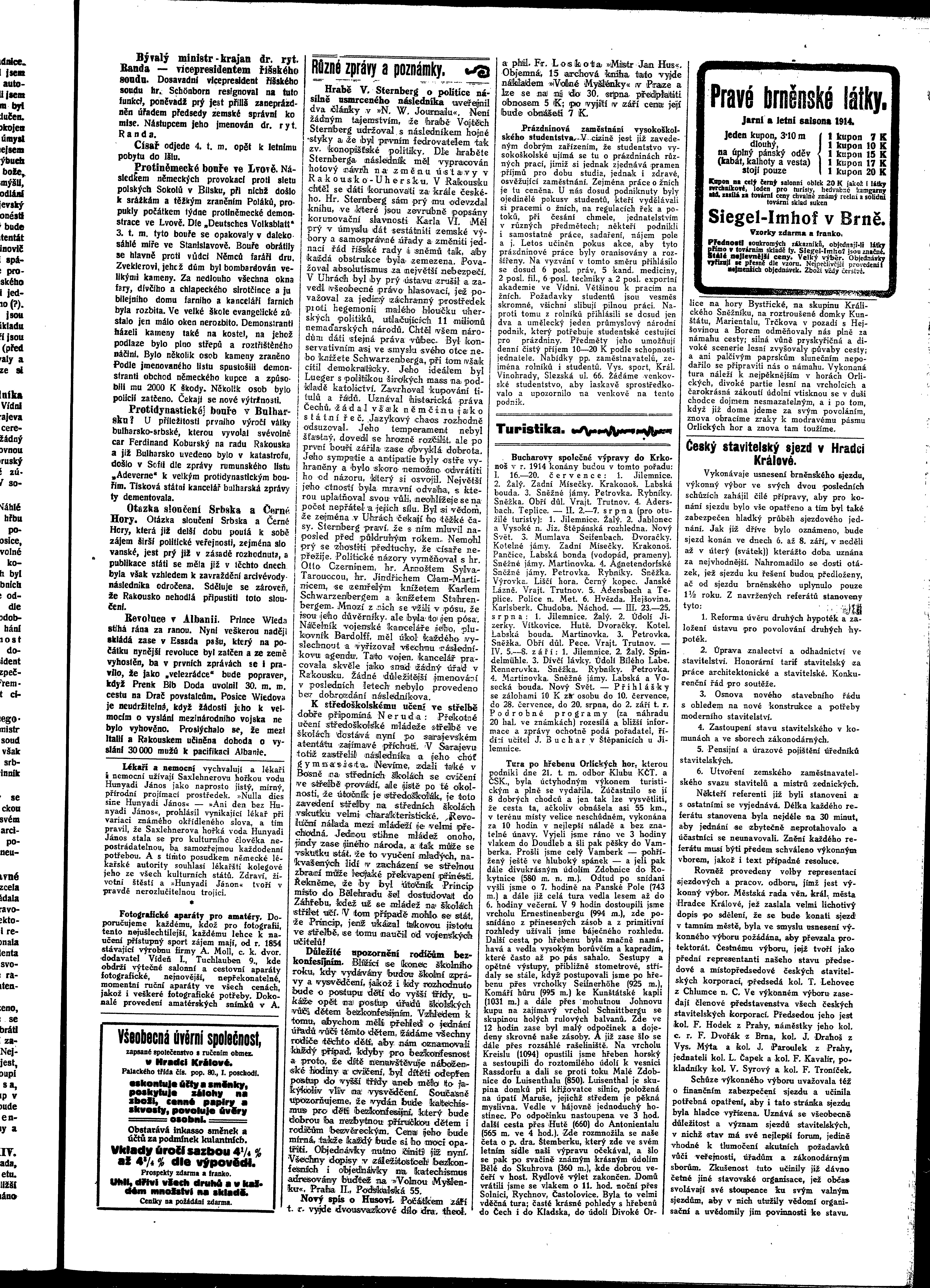* Datum vydání výtisku: 4.7.1914 Číslo výtisku: 49 Poznámky k výtisku: ranní vydání