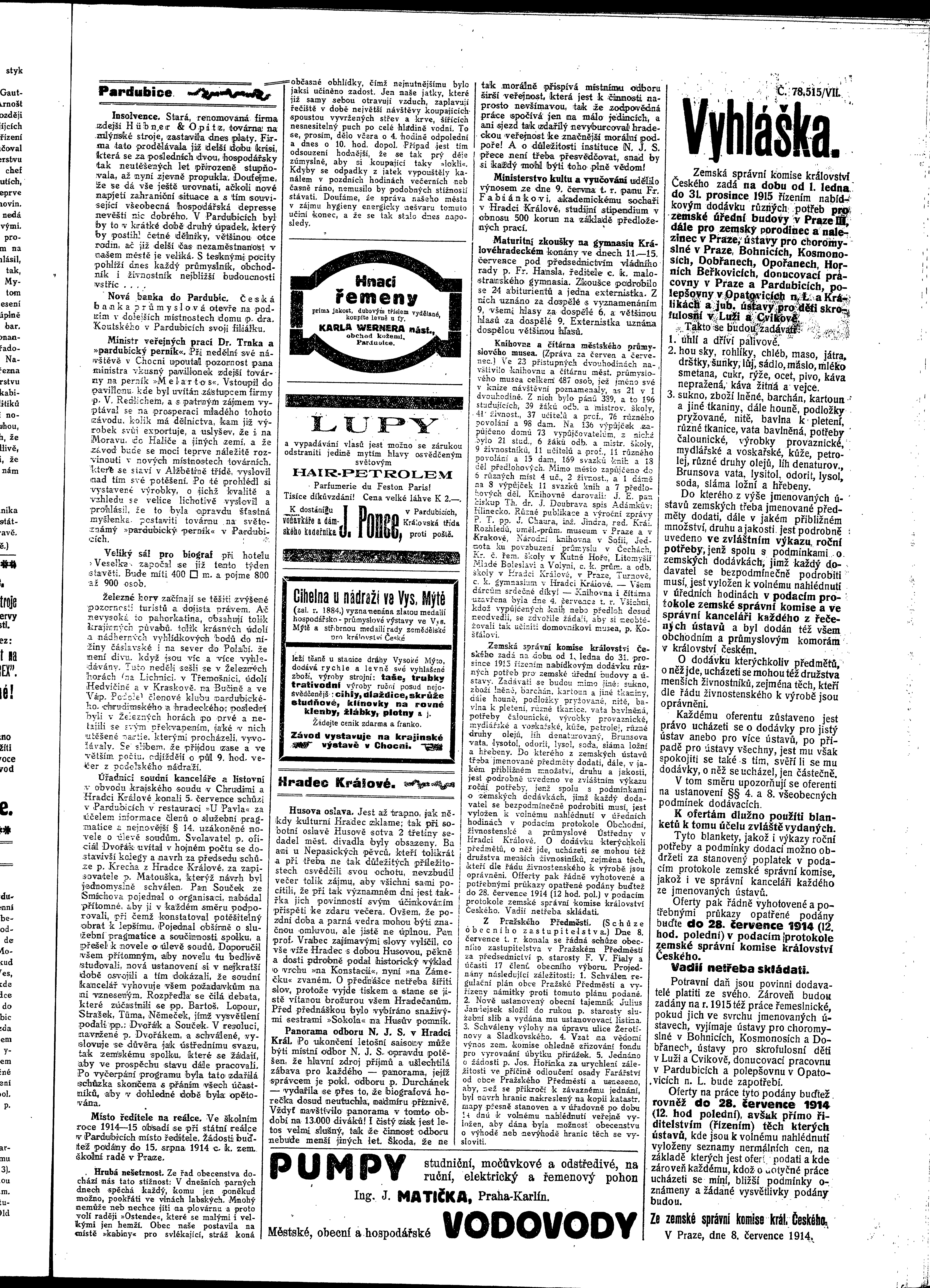 * Datum vydání výtisku: 15.7.1914 Číslo výtisku: 52 Poznámky k výtisku: ranní vydání
