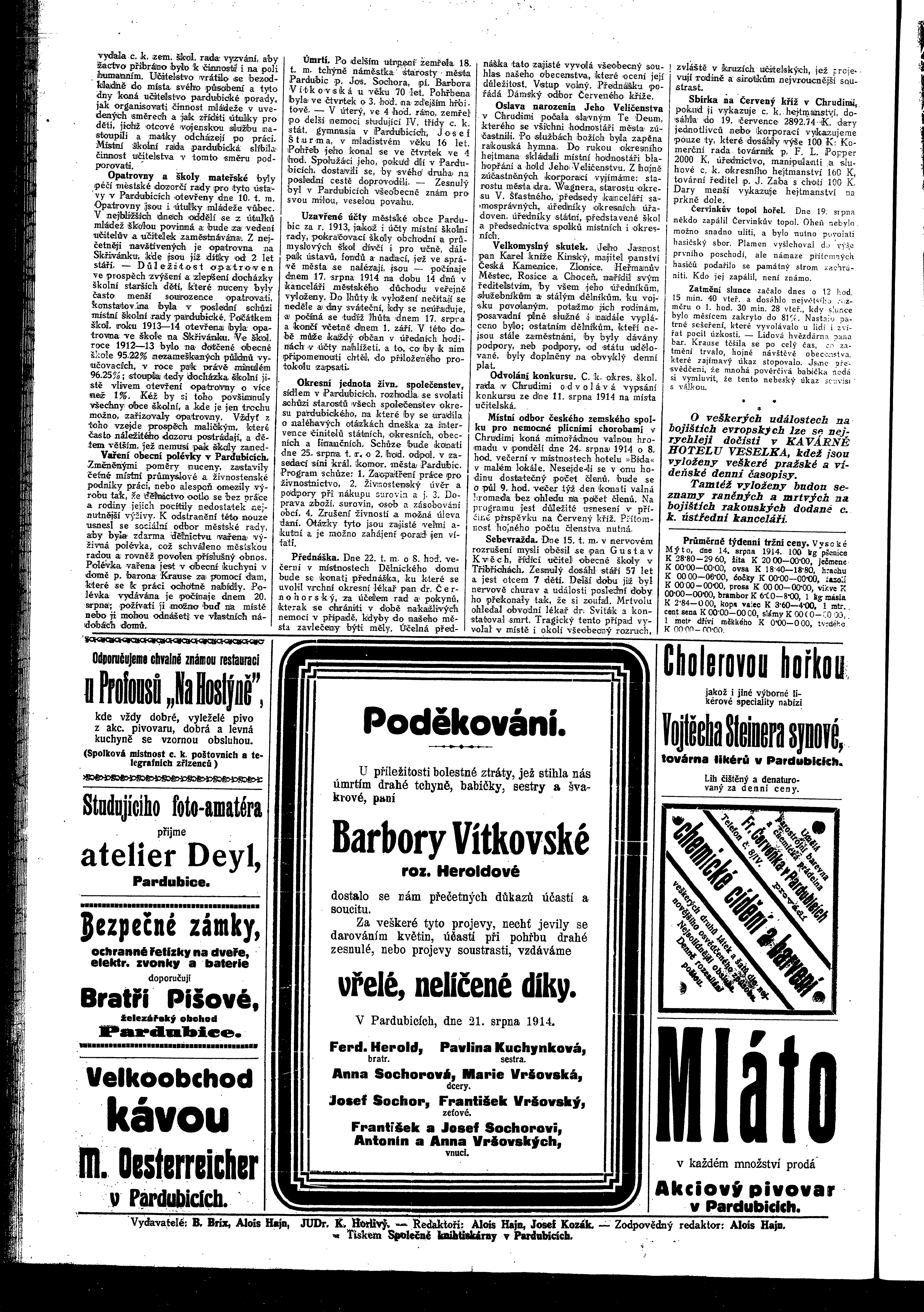 * Datum vydání výtisku: 22.8.1914 Číslo výtisku: 60 Poznámky k výtisku: ranní vydání