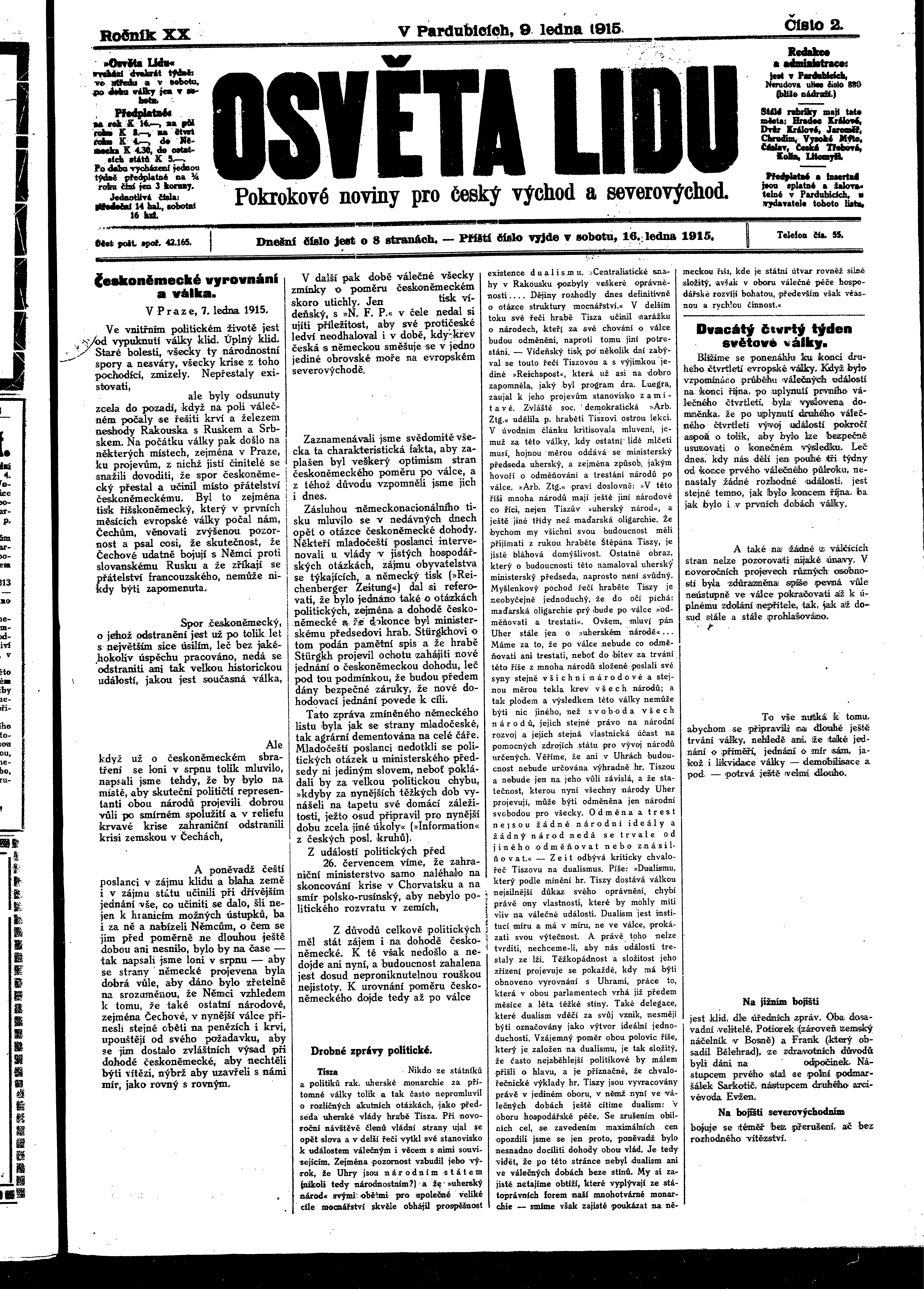 * Datum vydání výtisku: 9.1.1915 Číslo výtisku: 2 Poznámky k výtisku: ranní vydání