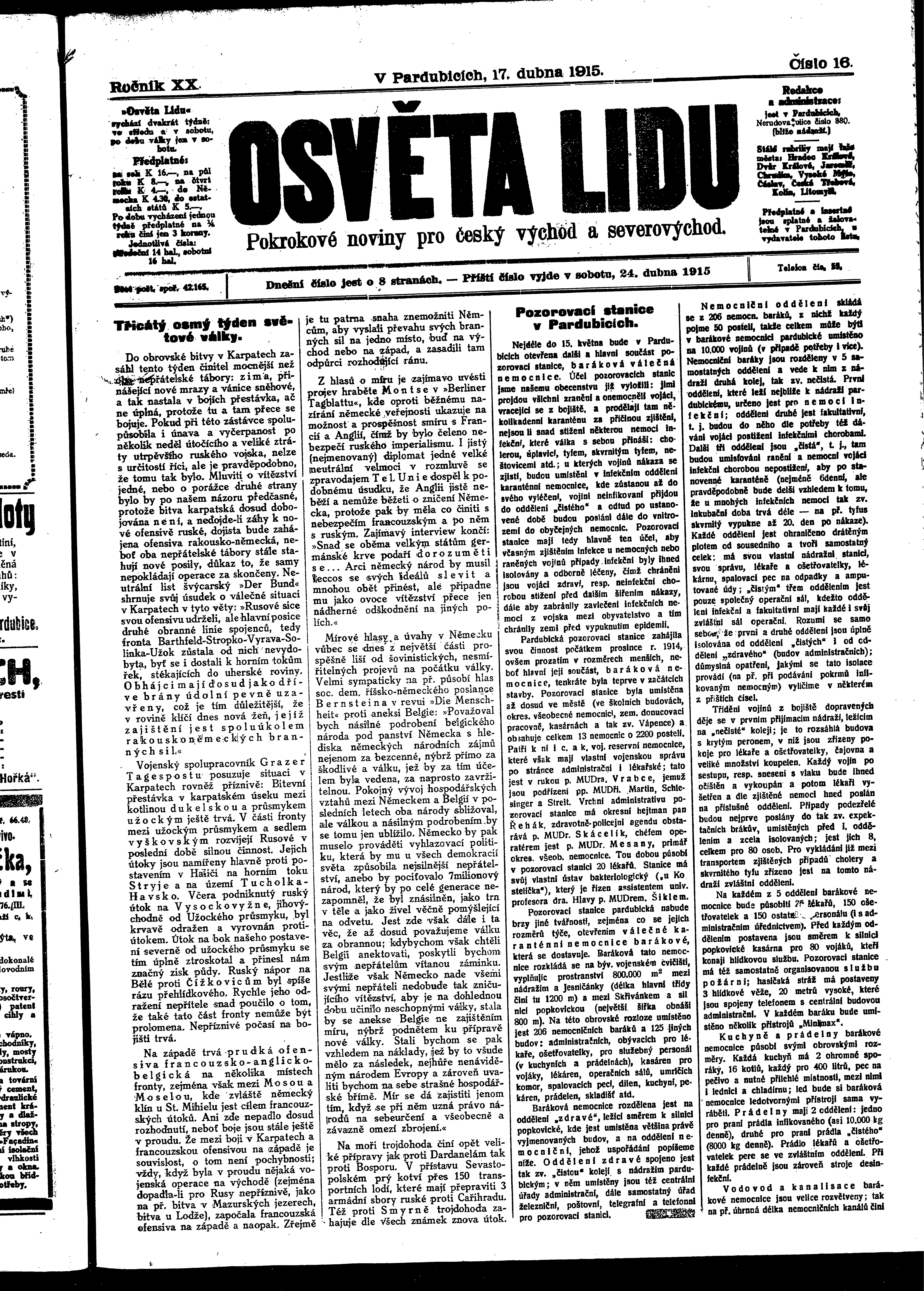 * Datum vydání výtisku: 17.4.1915 Číslo výtisku: 16 Poznámky k výtisku: ranní vydání