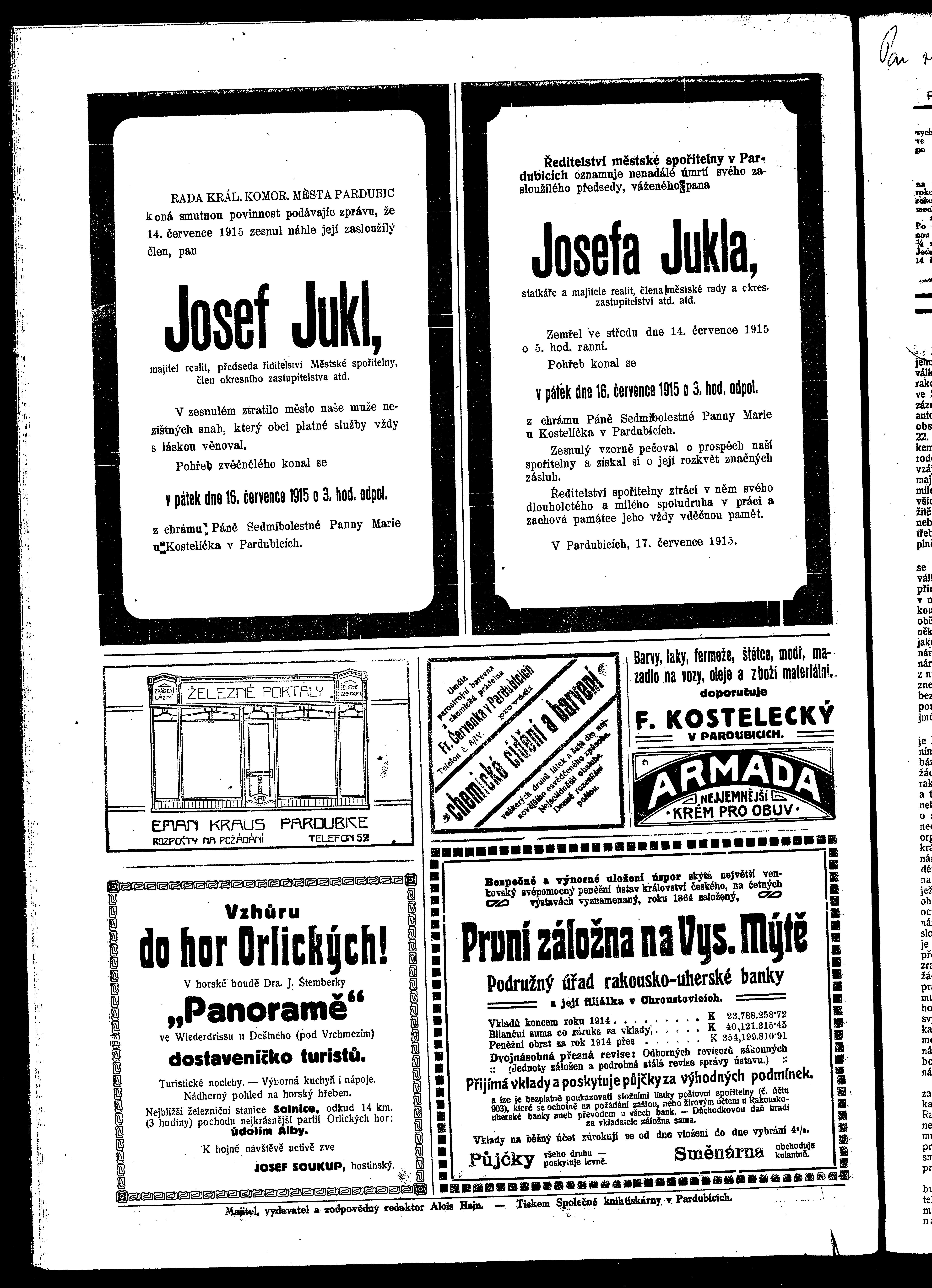 * Datum vydání výtisku: 17.7.1915 Číslo výtisku: 29 Poznámky k výtisku: ranní vydání