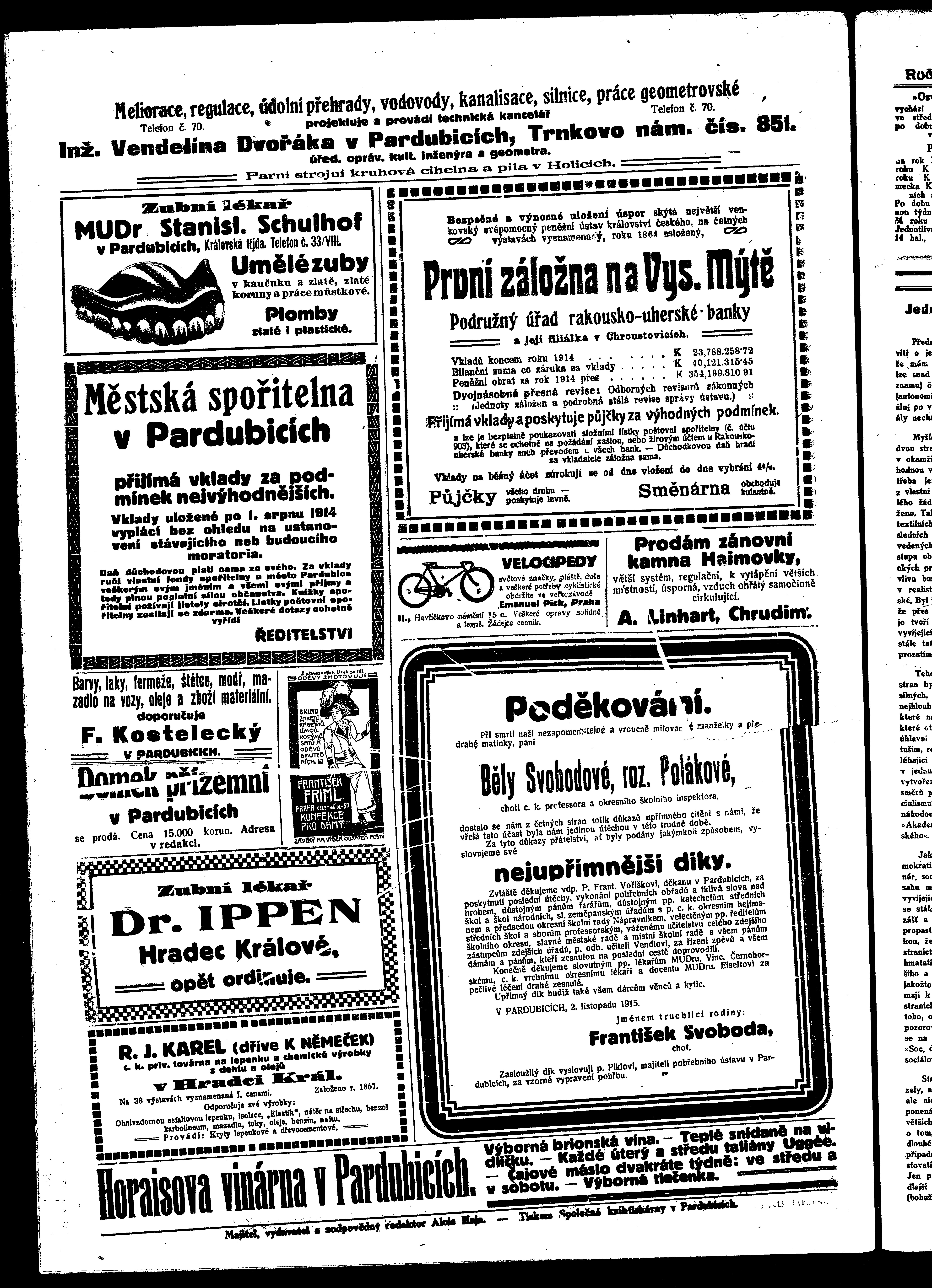 * Datum vydání výtisku: 6.11.1915 Číslo výtisku: 45 Poznámky k výtisku: ranní vydání