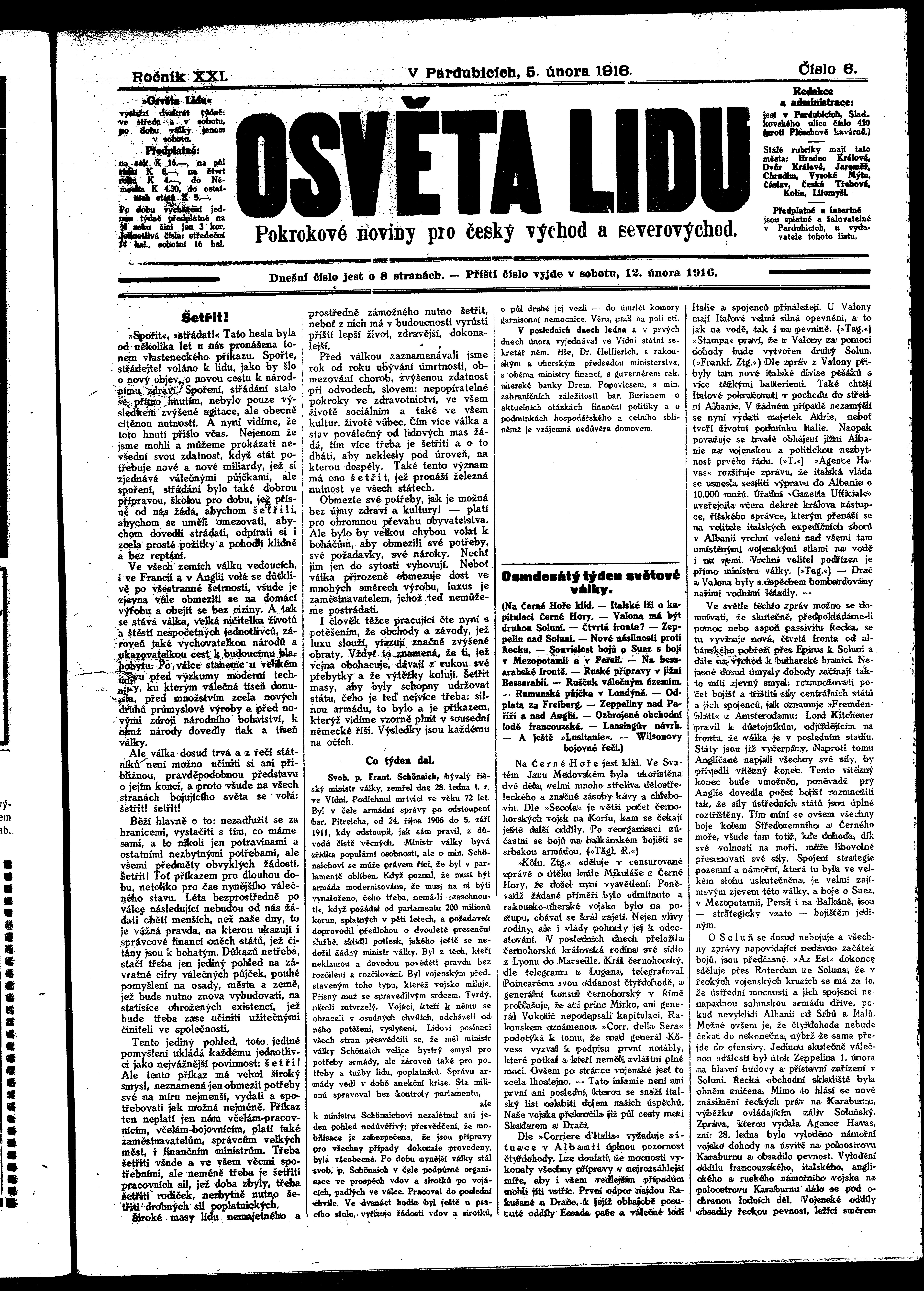 * Datum vydání výtisku: 5.2.1916 Číslo výtisku: 6 Poznámky k výtisku: ranní vydání