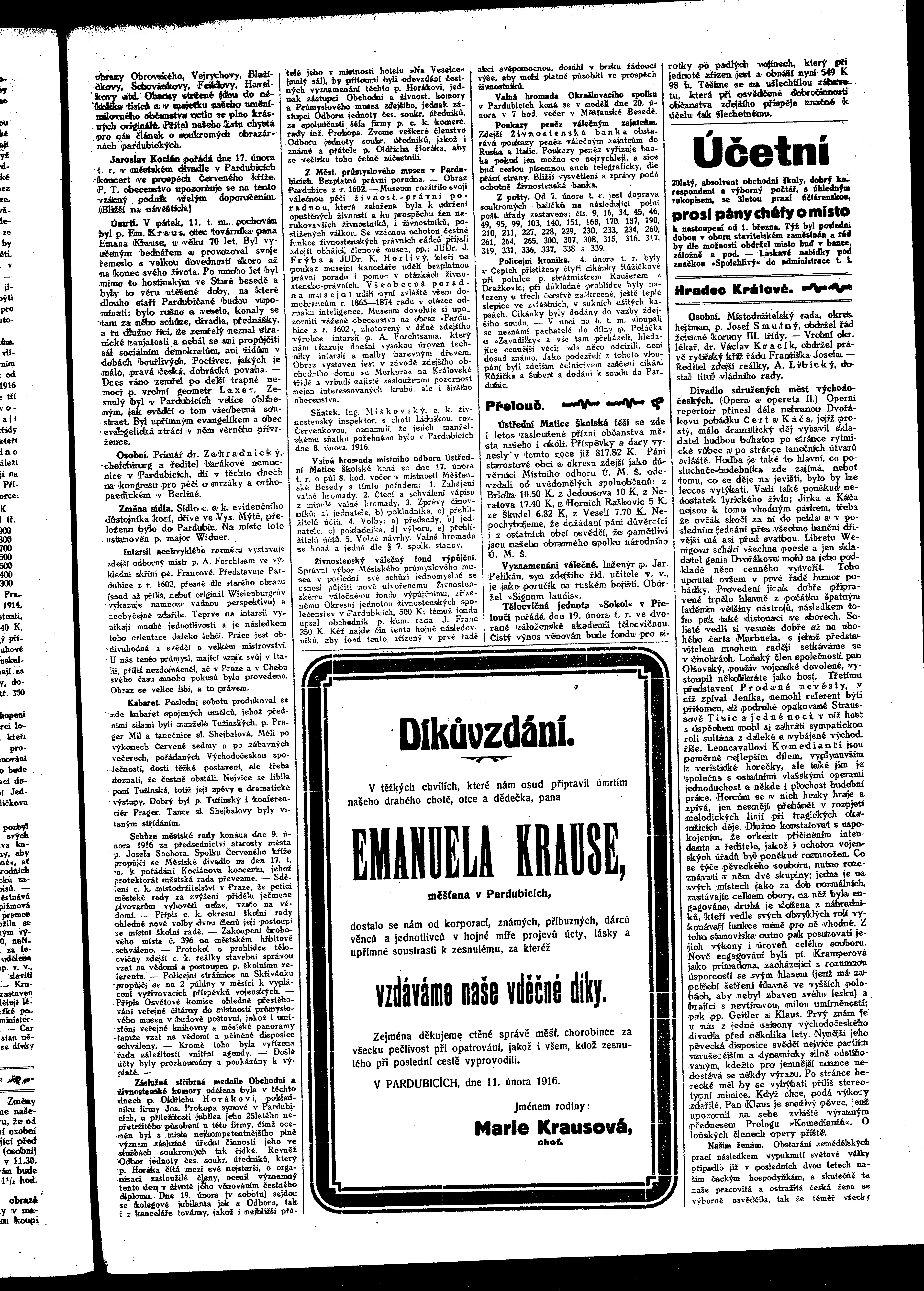 * Datum vydání výtisku: 12.2.1916 Číslo výtisku: 7 Poznámky k výtisku: ranní vydání