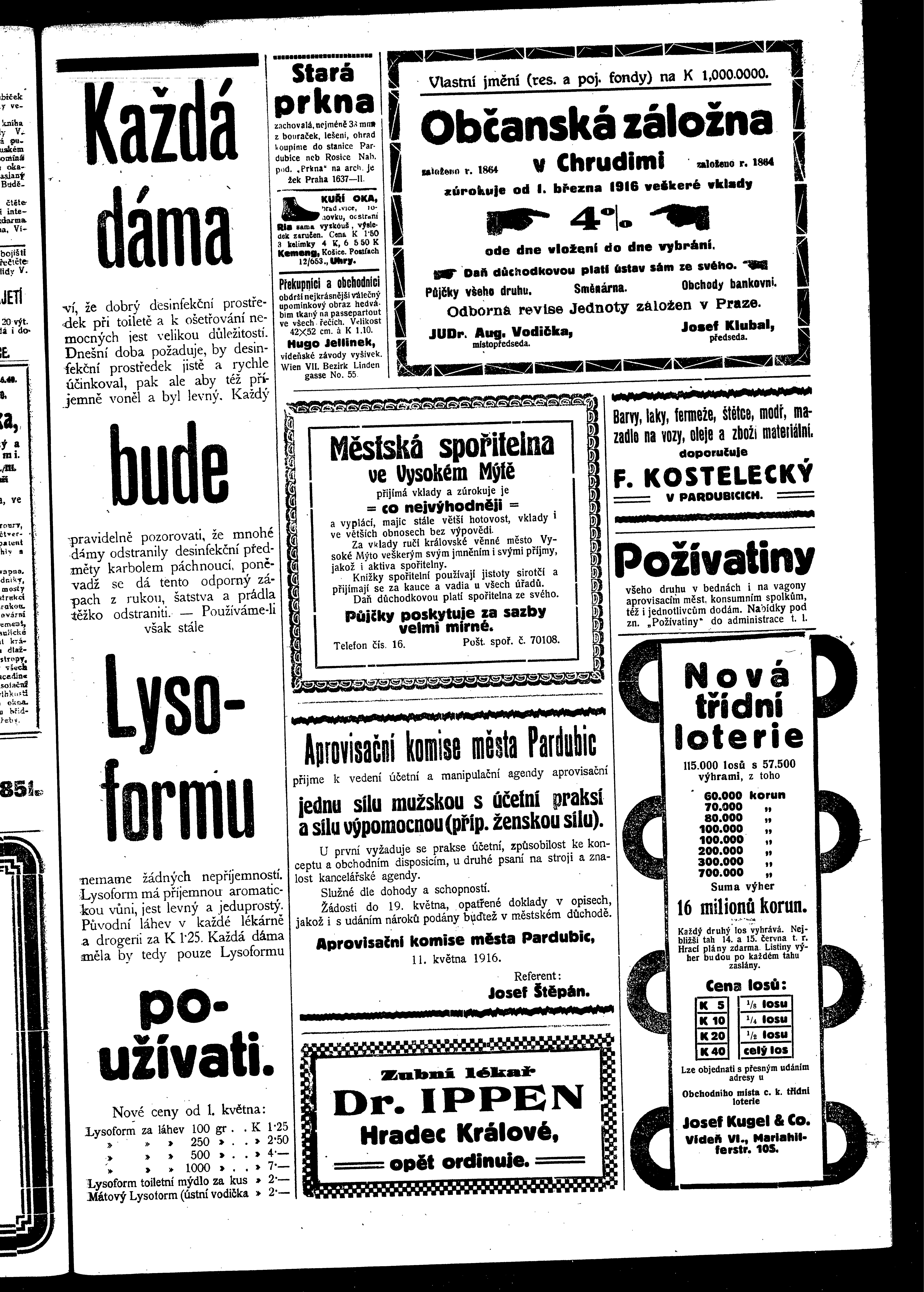 * Datum vydání výtisku: 13.5.1916 Číslo výtisku: 20 Poznámky k výtisku: ranní vydání