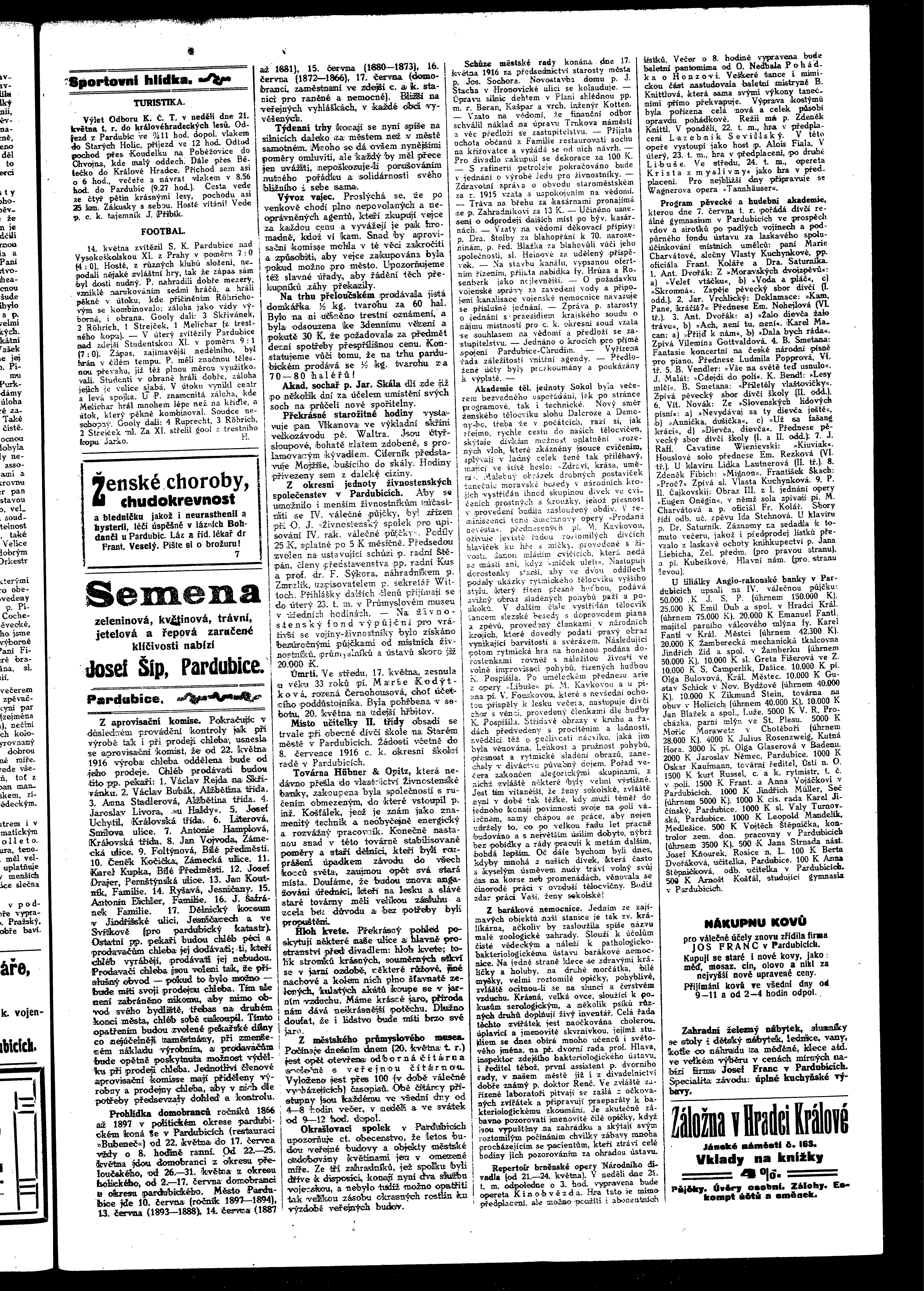 * Datum vydání výtisku: 20.5.1916 Číslo výtisku: 21 Poznámky k výtisku: ranní vydání
