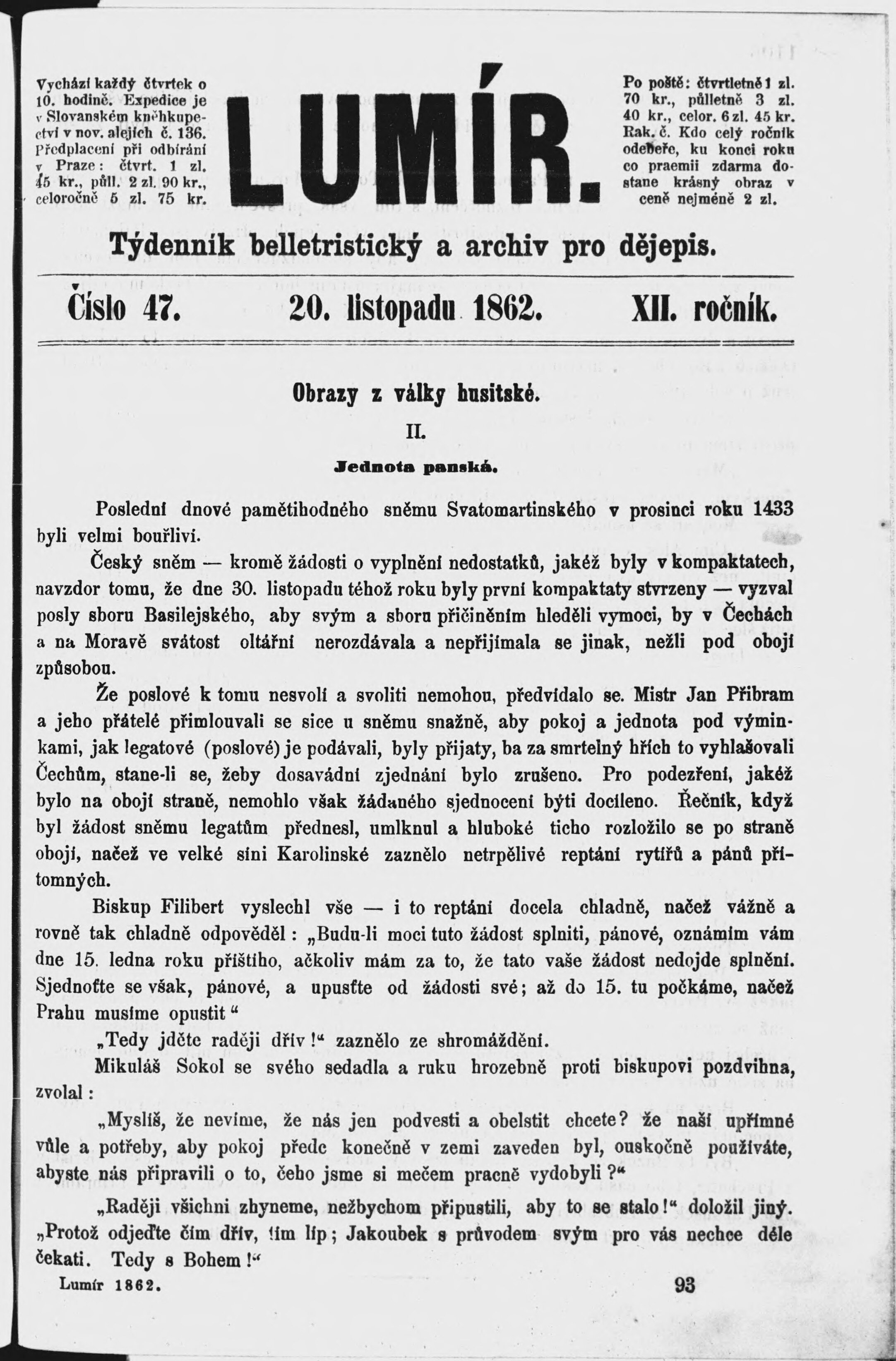 * Datum vydání výtisku: 20.11.1862 Číslo výtisku: 47