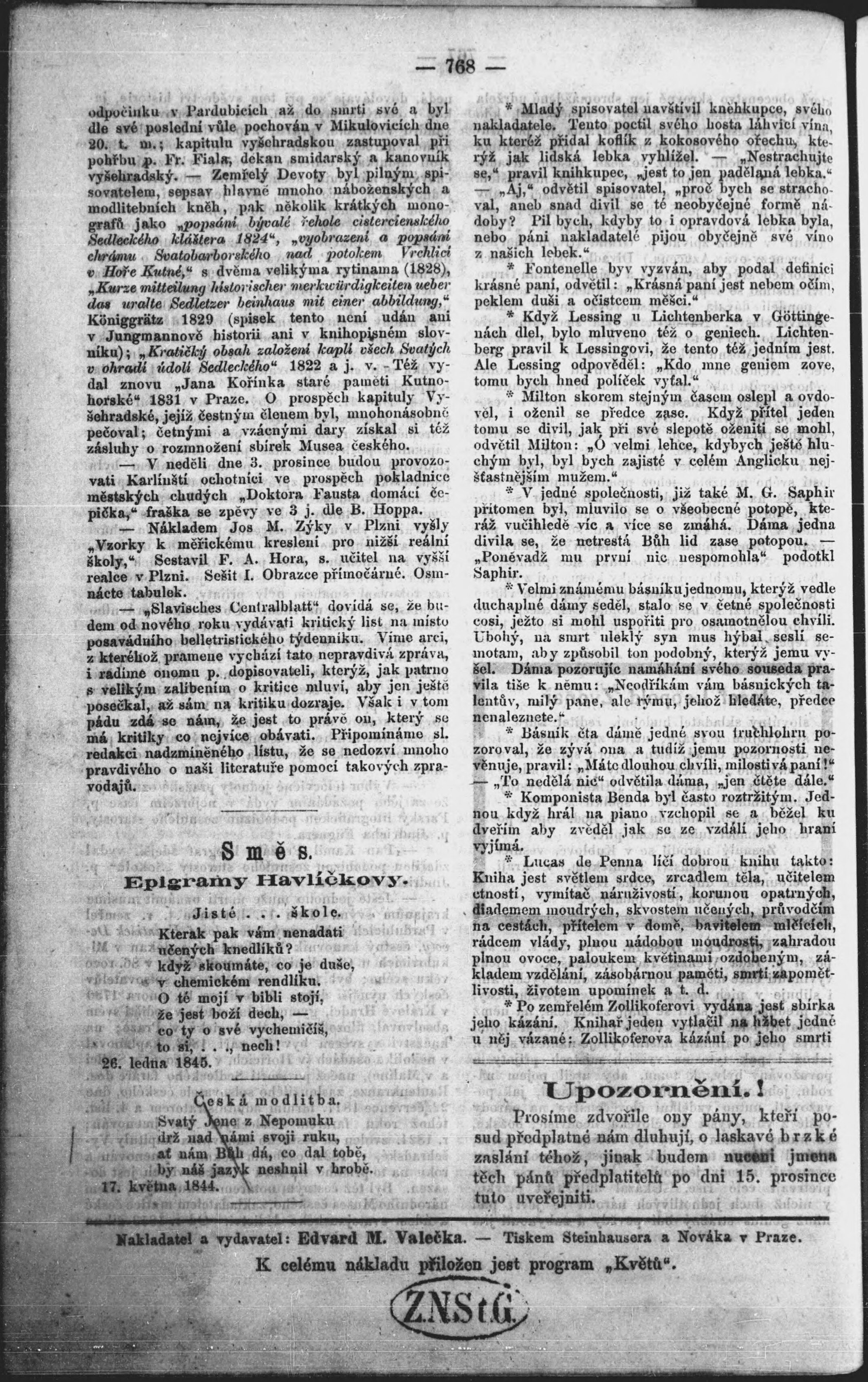 * Datum vydání výtisku: 30.11.1865 Číslo výtisku: 48