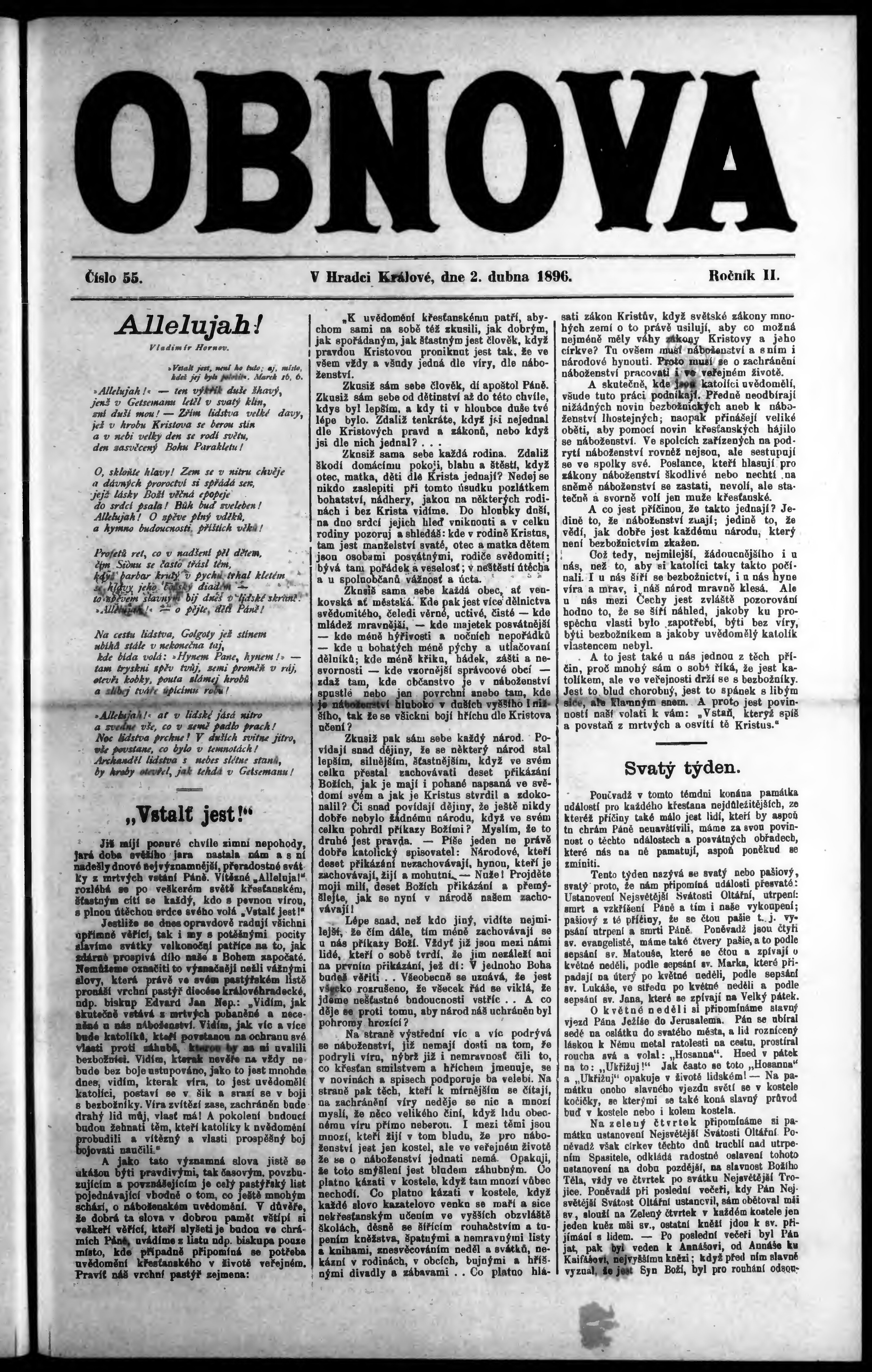 * Datum vydání výtisku: 2.4.1896 Číslo výtisku: 55
