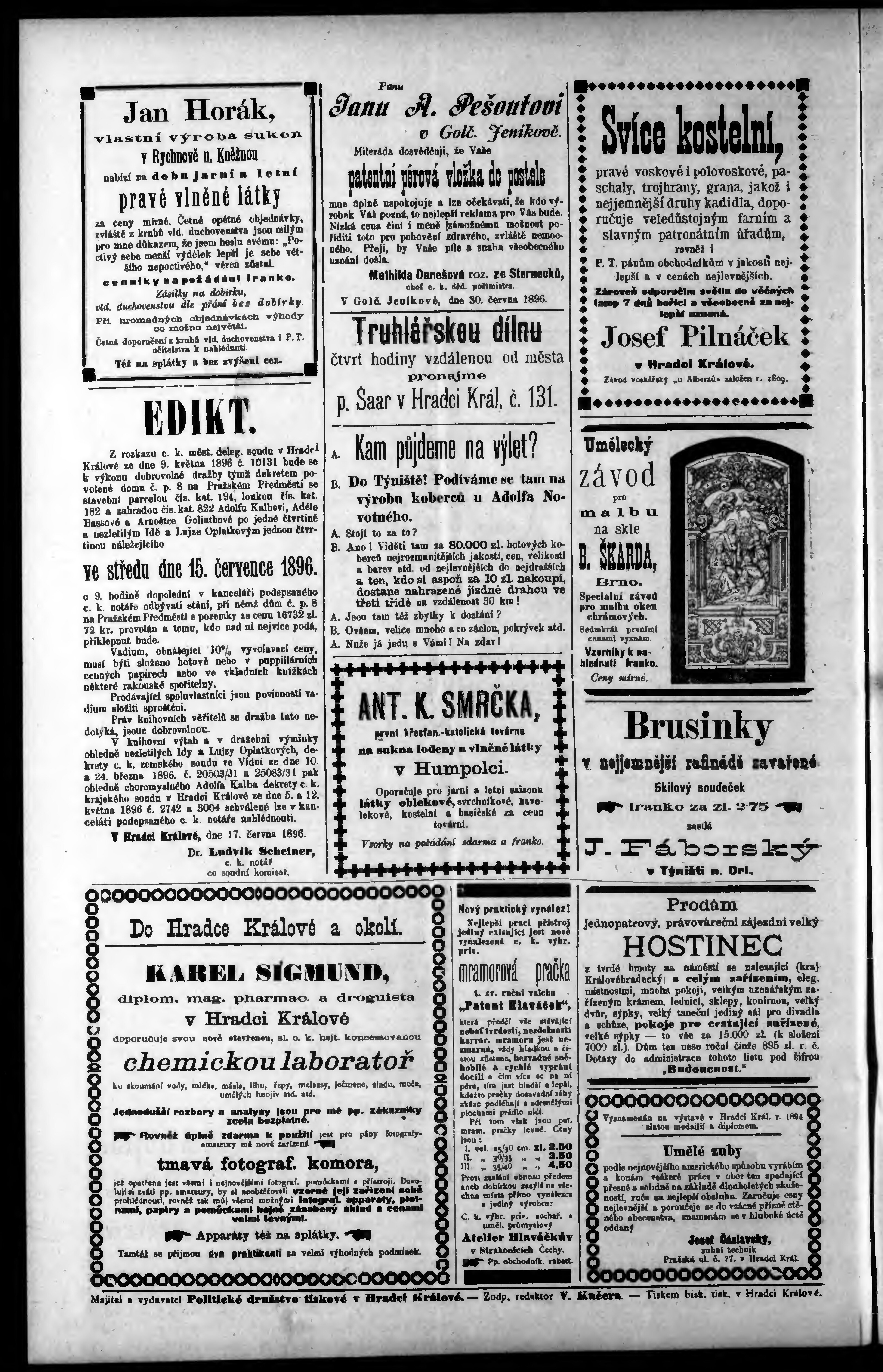 * Datum vydání výtisku: 10.7.1896 Číslo výtisku: 69