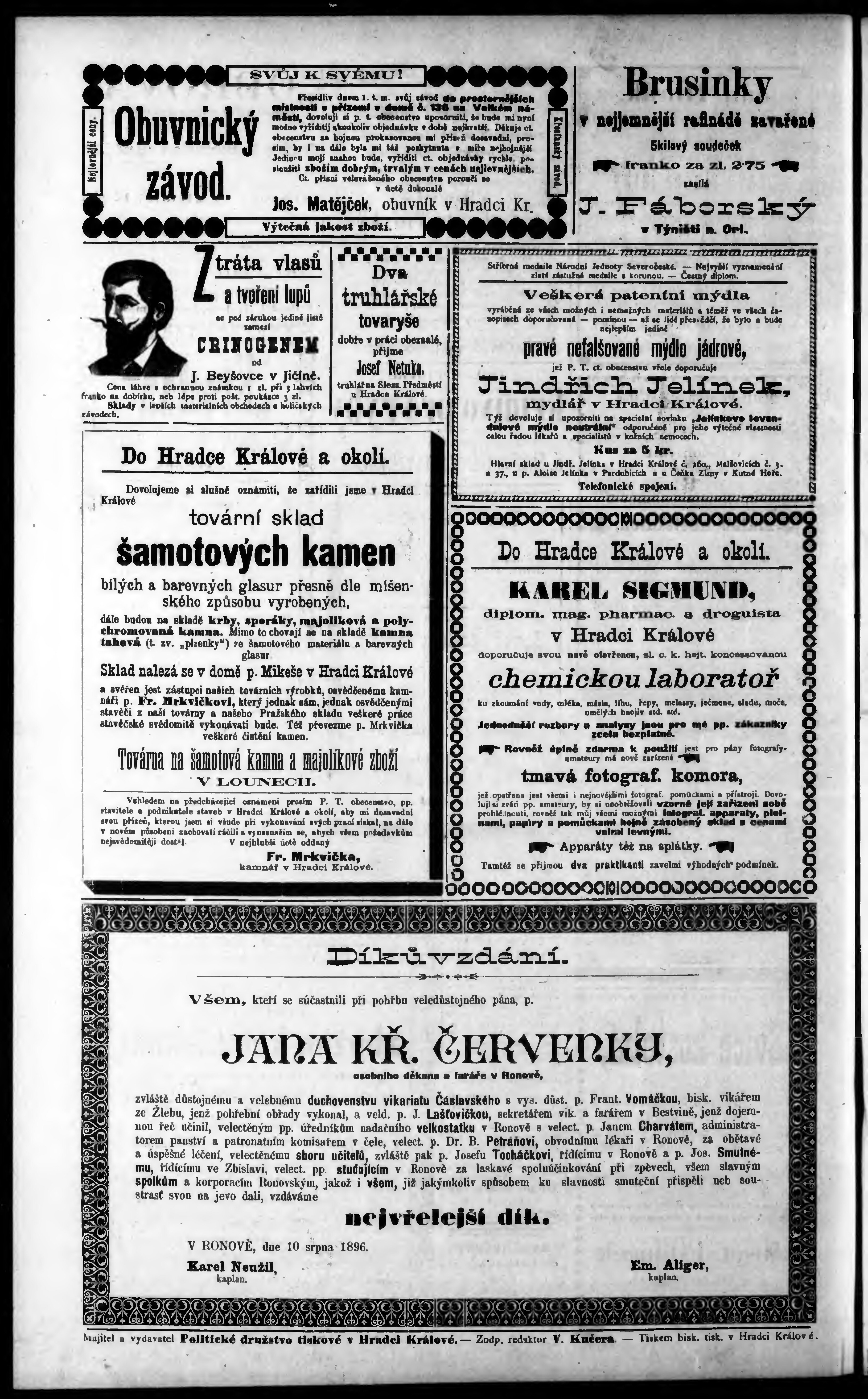* Datum vydání výtisku: 14.8.1896 Číslo výtisku: 74