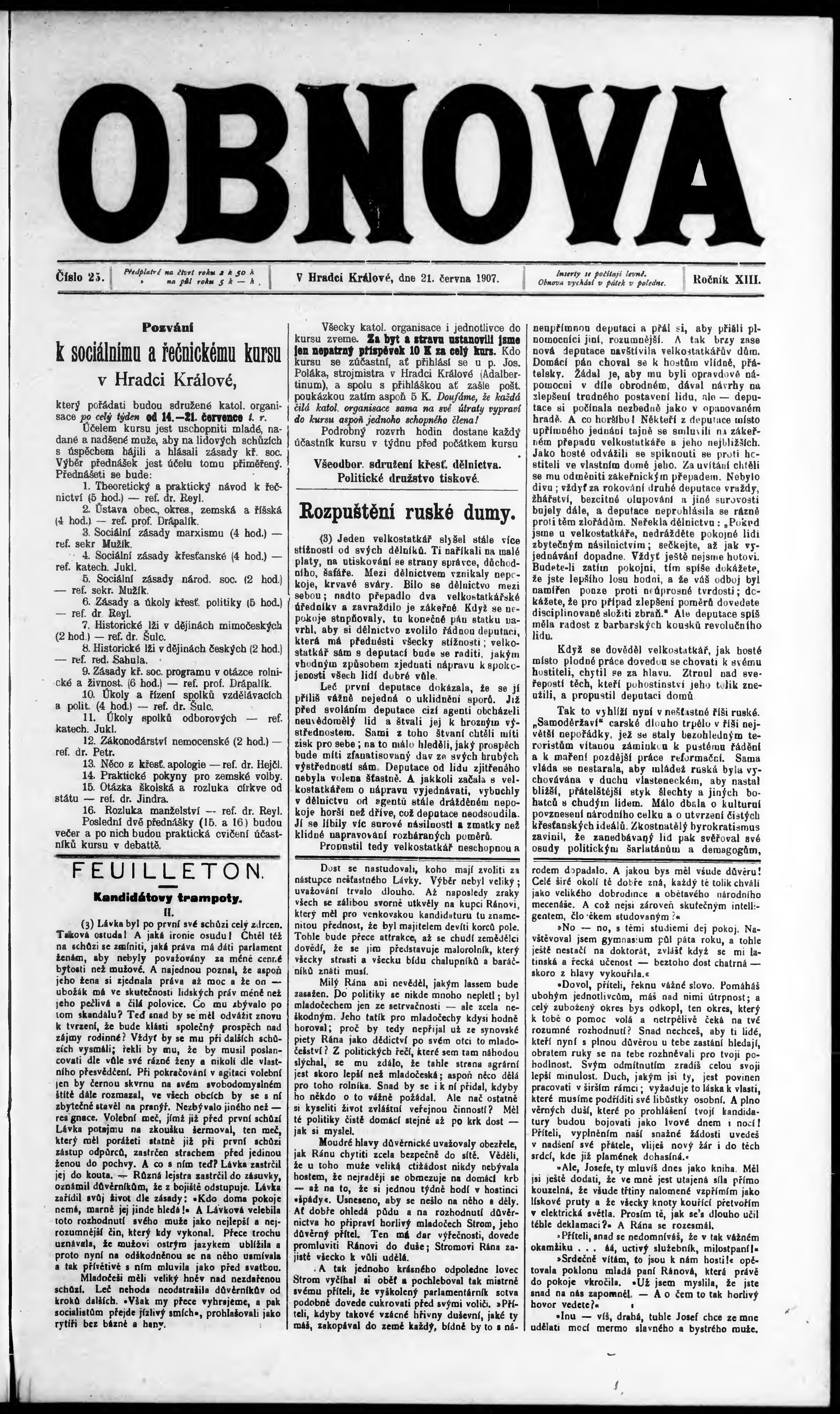 * Datum vydání výtisku: 21.6.1907 Číslo výtisku: 25
