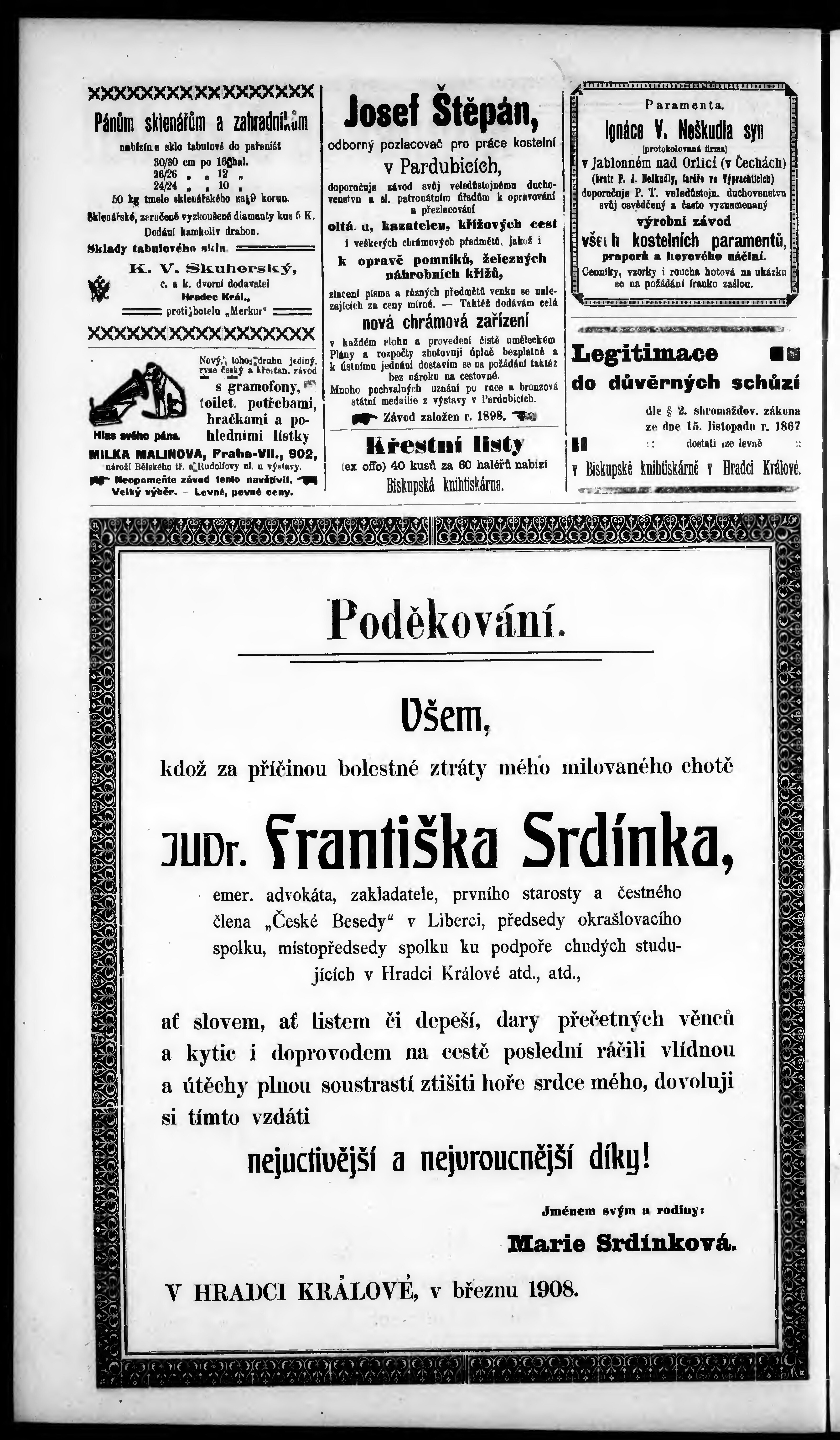 * Datum vydání výtisku: 3.4.1908 Číslo výtisku: 14 Typ výtisku: příloha Poznámky k výtisku: příloha