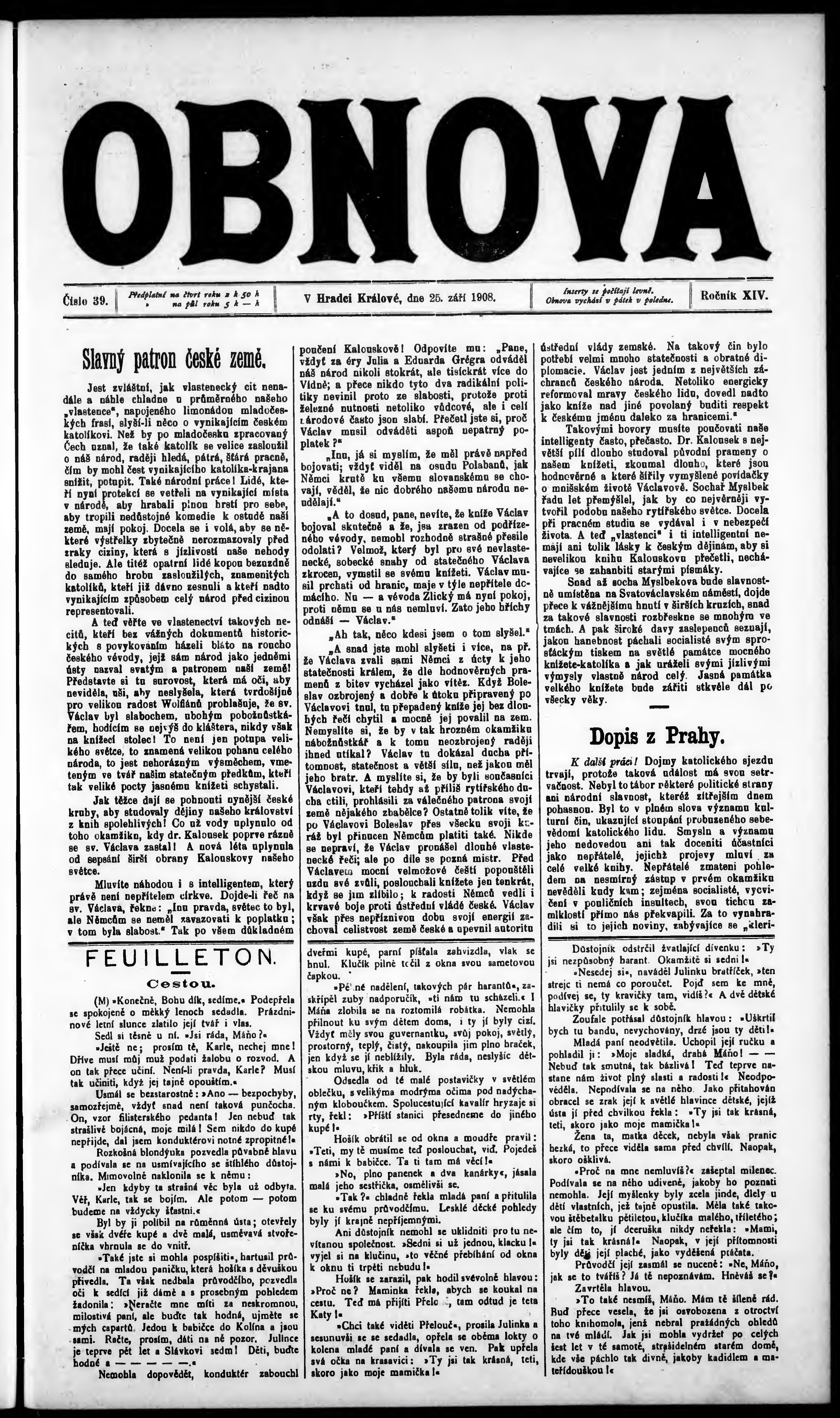 * Datum vydání výtisku: 25.9.1908 Číslo výtisku: 39
