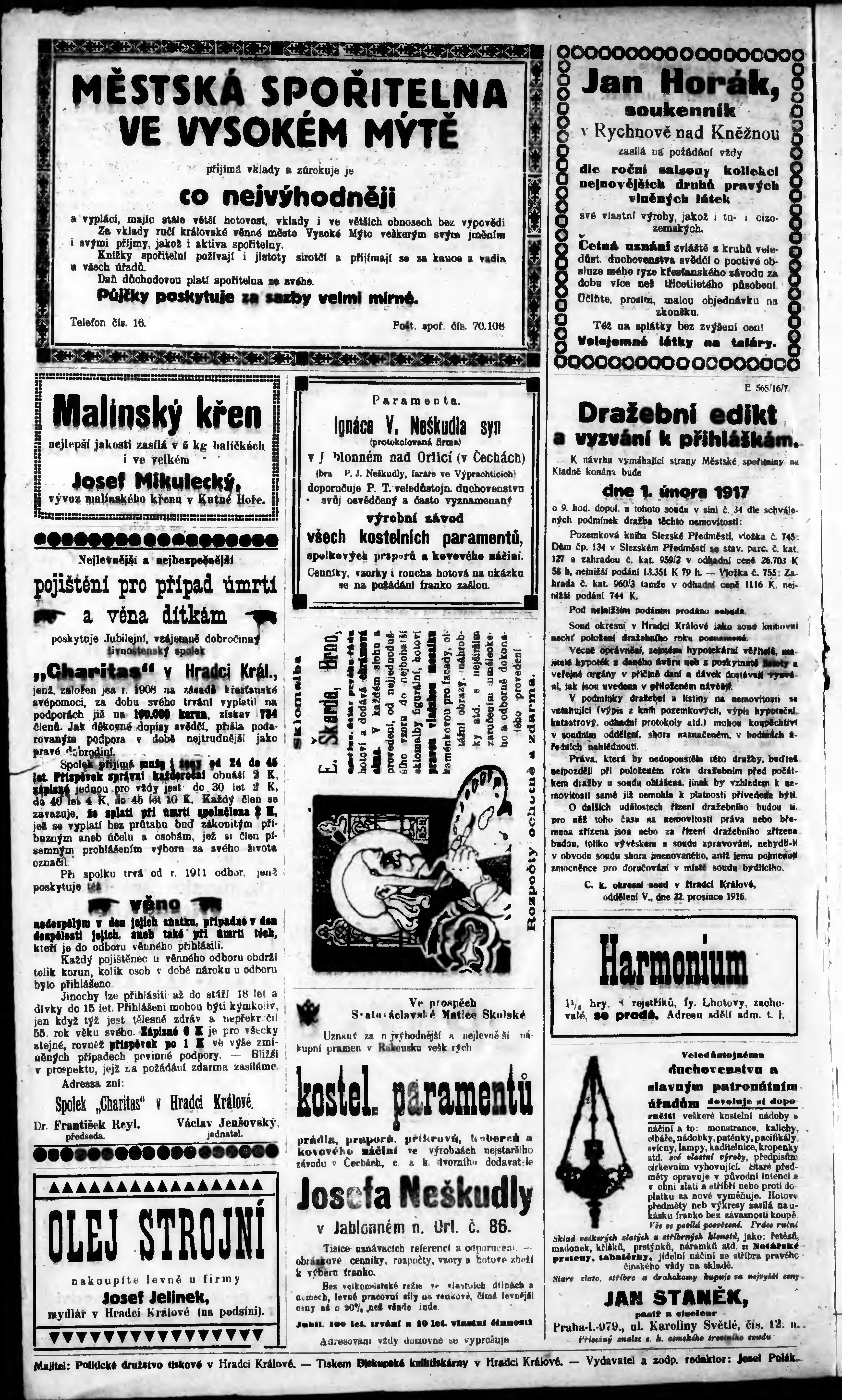 * Datum vydání výtisku: 5.1.1917 Číslo výtisku: 1