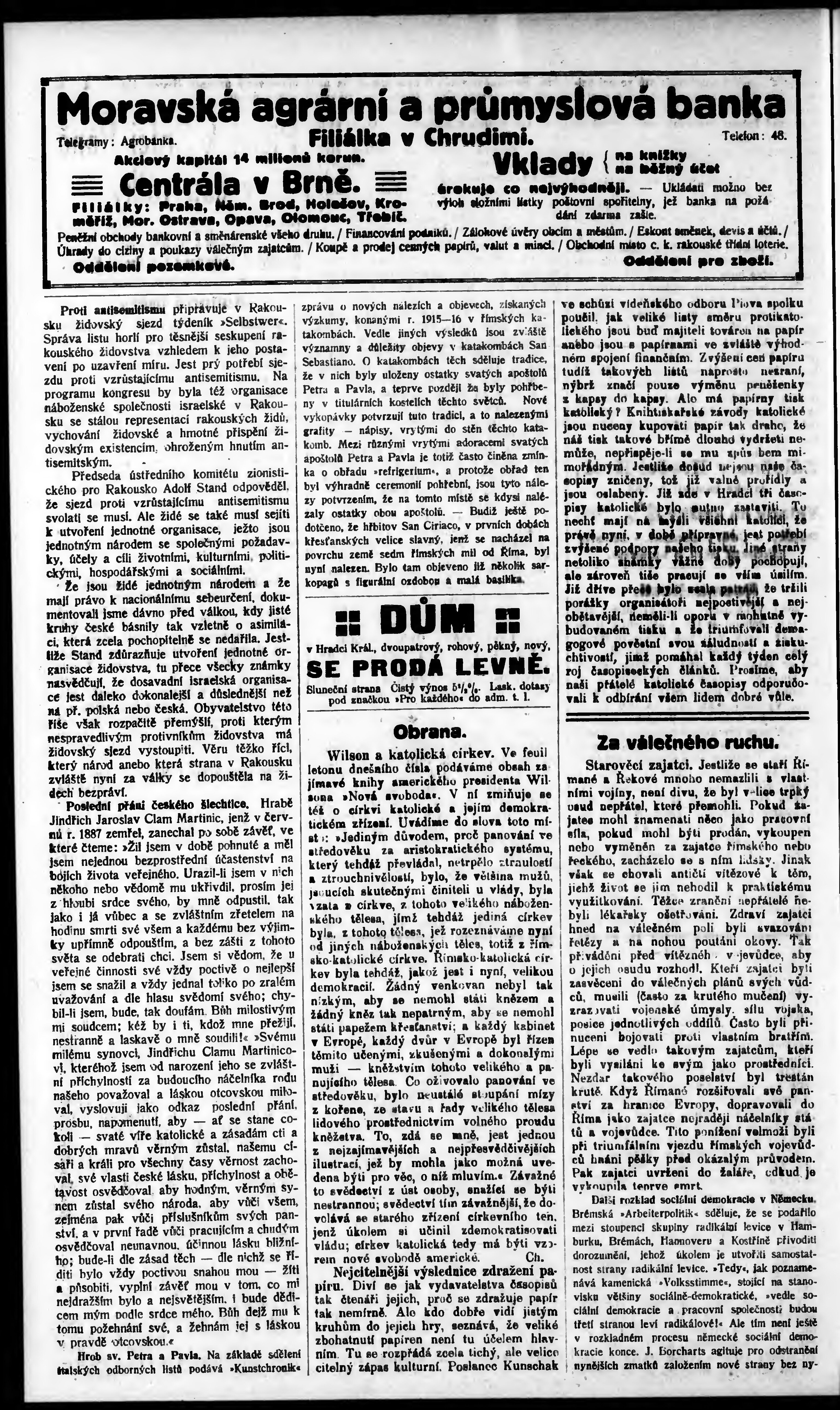 * Datum vydání výtisku: 30.3.1917 Číslo výtisku: 13