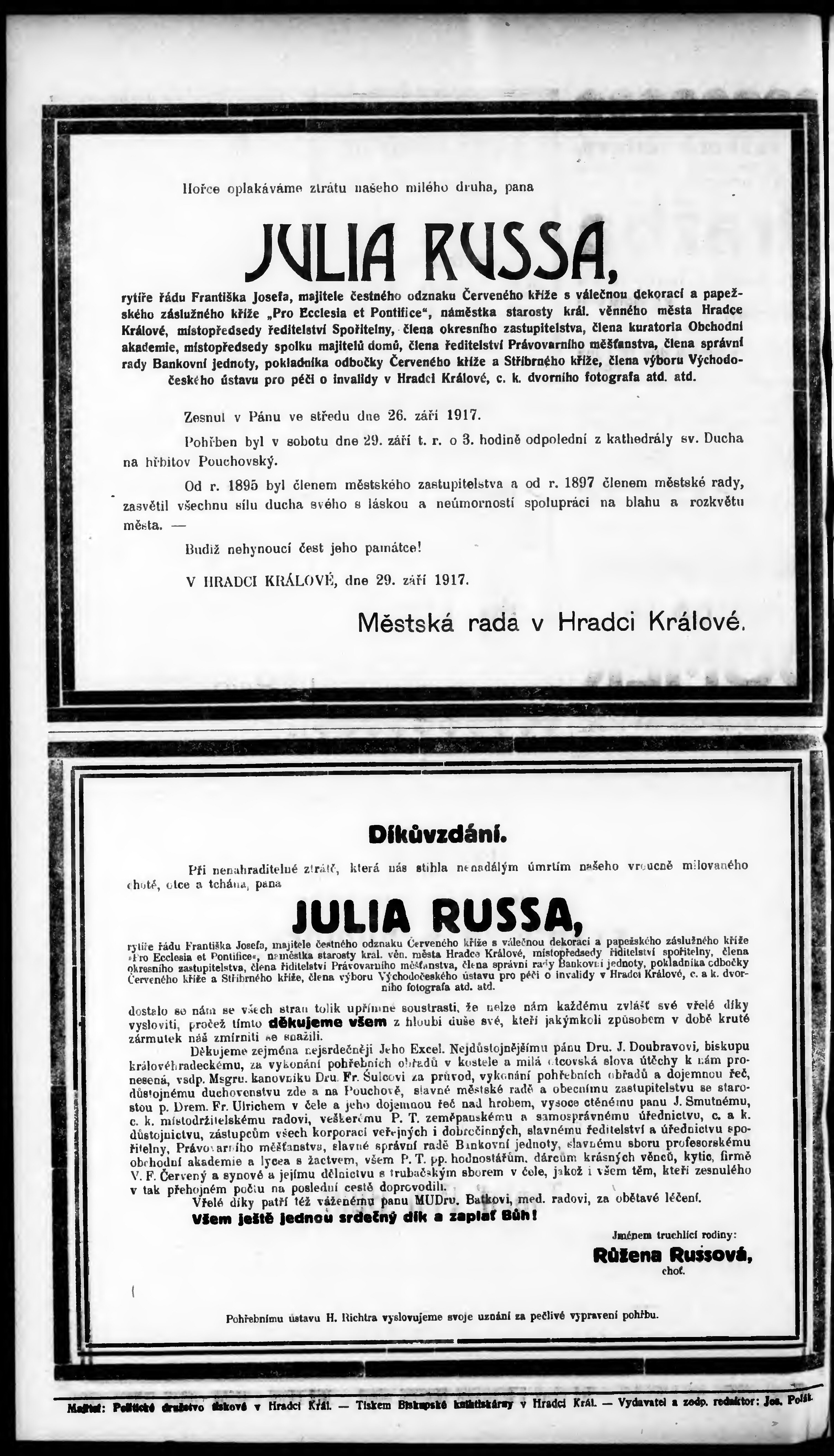 * Datum vydání výtisku: 5.10.1917 Číslo výtisku: 40