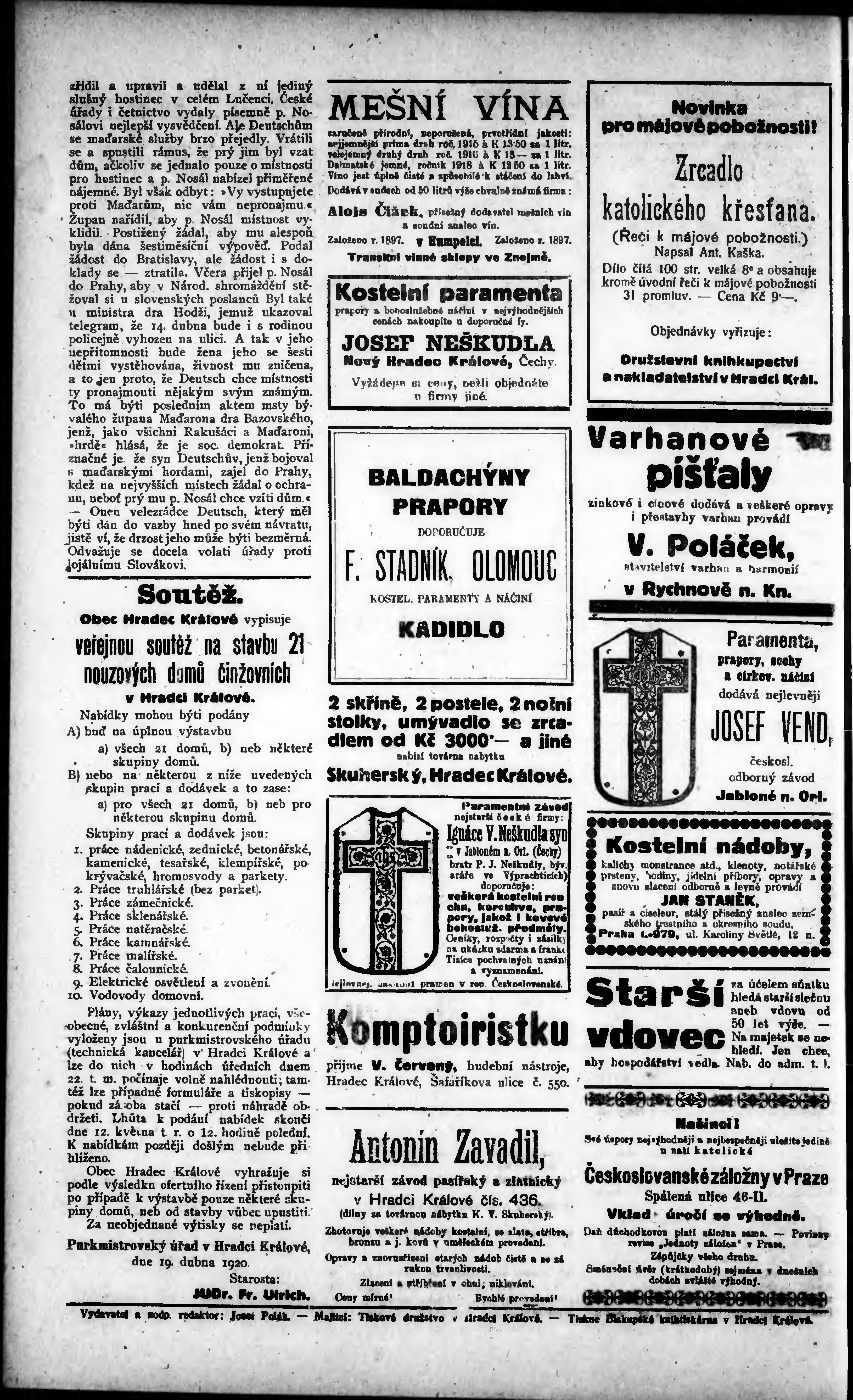 * Datum vydání výtisku: 23.4.1920 Číslo výtisku: 17