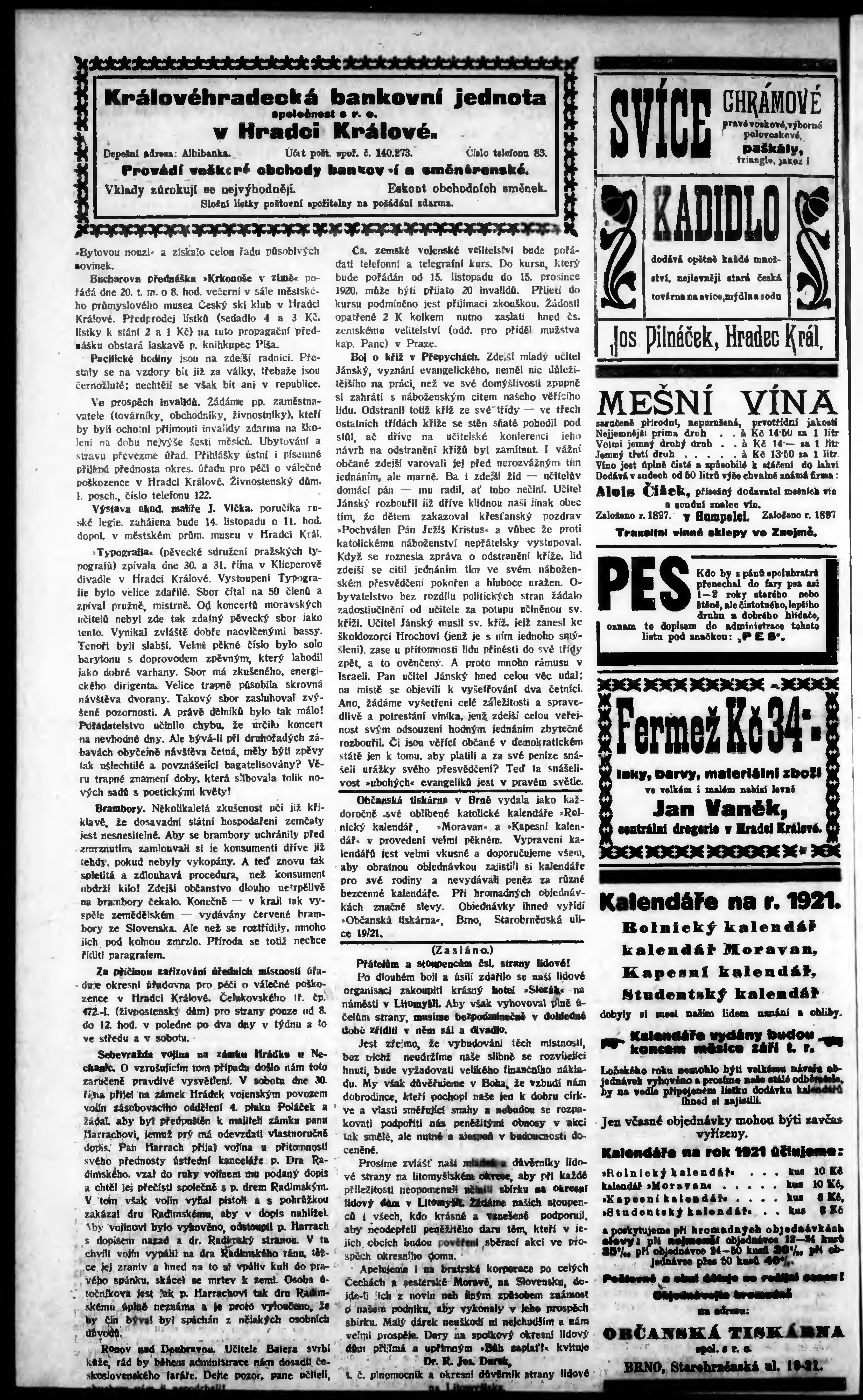 * Datum vydání výtisku: 12.11.1920 Číslo výtisku: 46