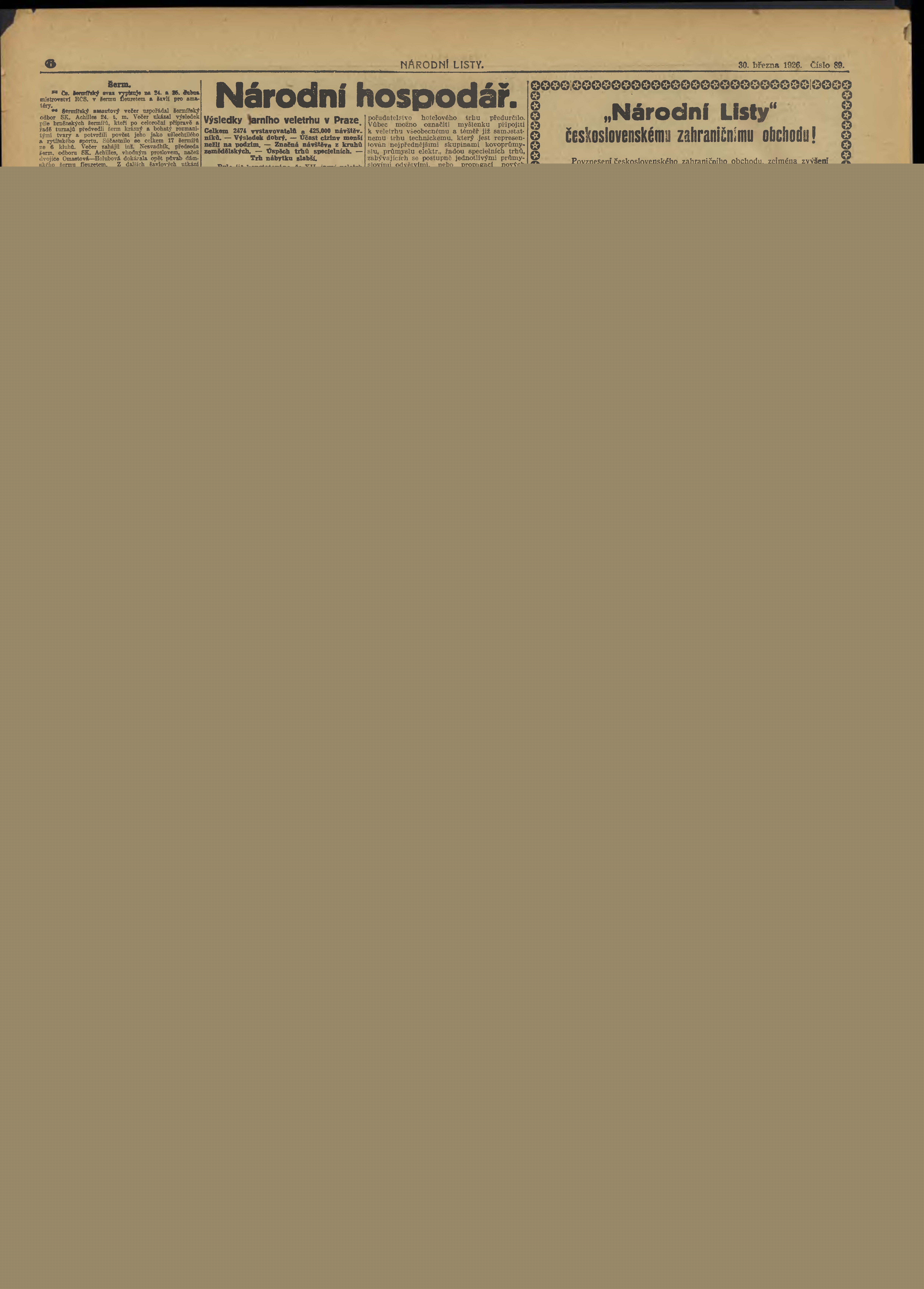 * Datum vydání výtisku: 30.3.1926 Číslo výtisku: 89