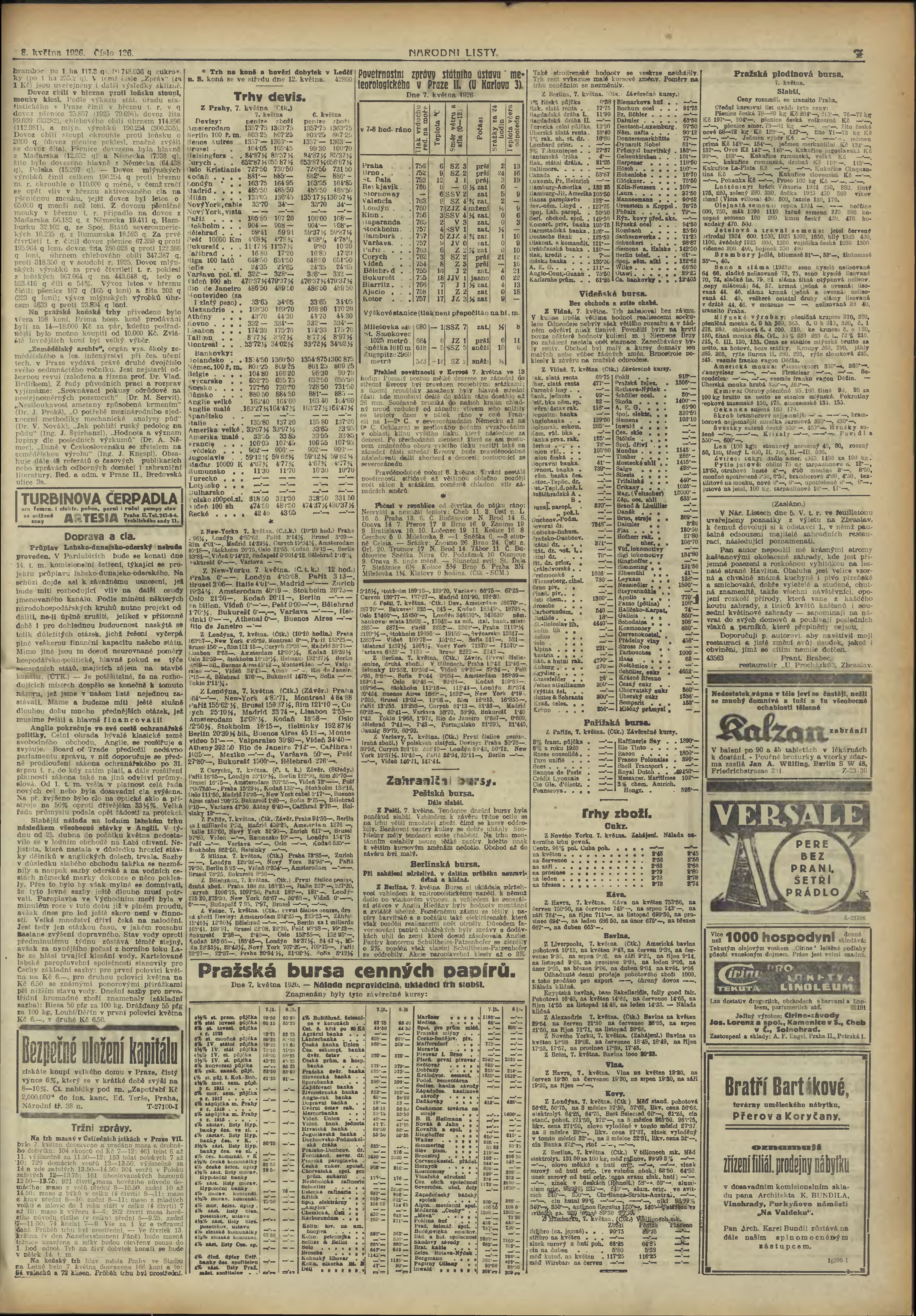 * Datum vydání výtisku: 9.5.1926 Číslo výtisku: 126