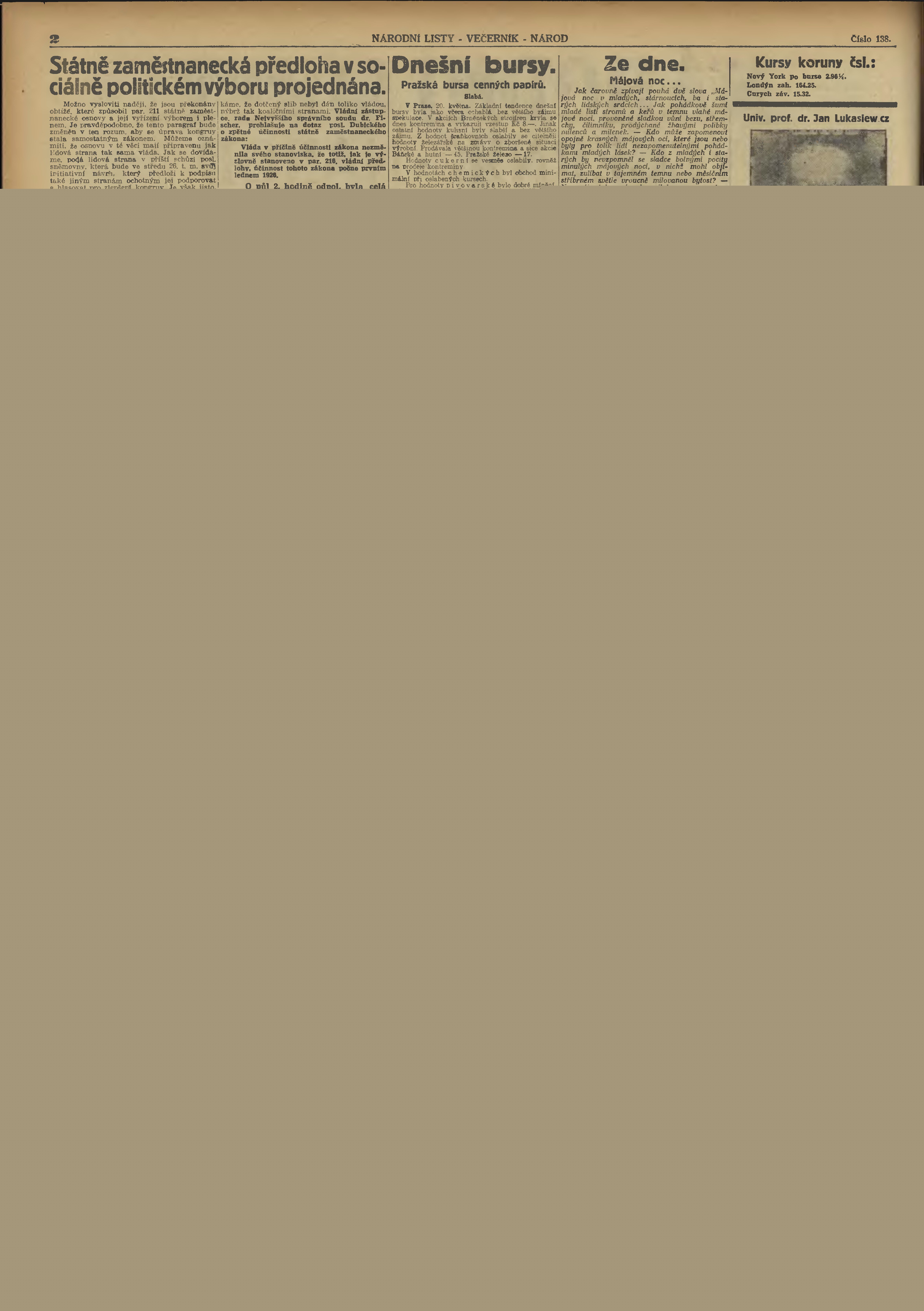 * Datum vydání výtisku: 20.5.1926 Číslo výtisku: 138