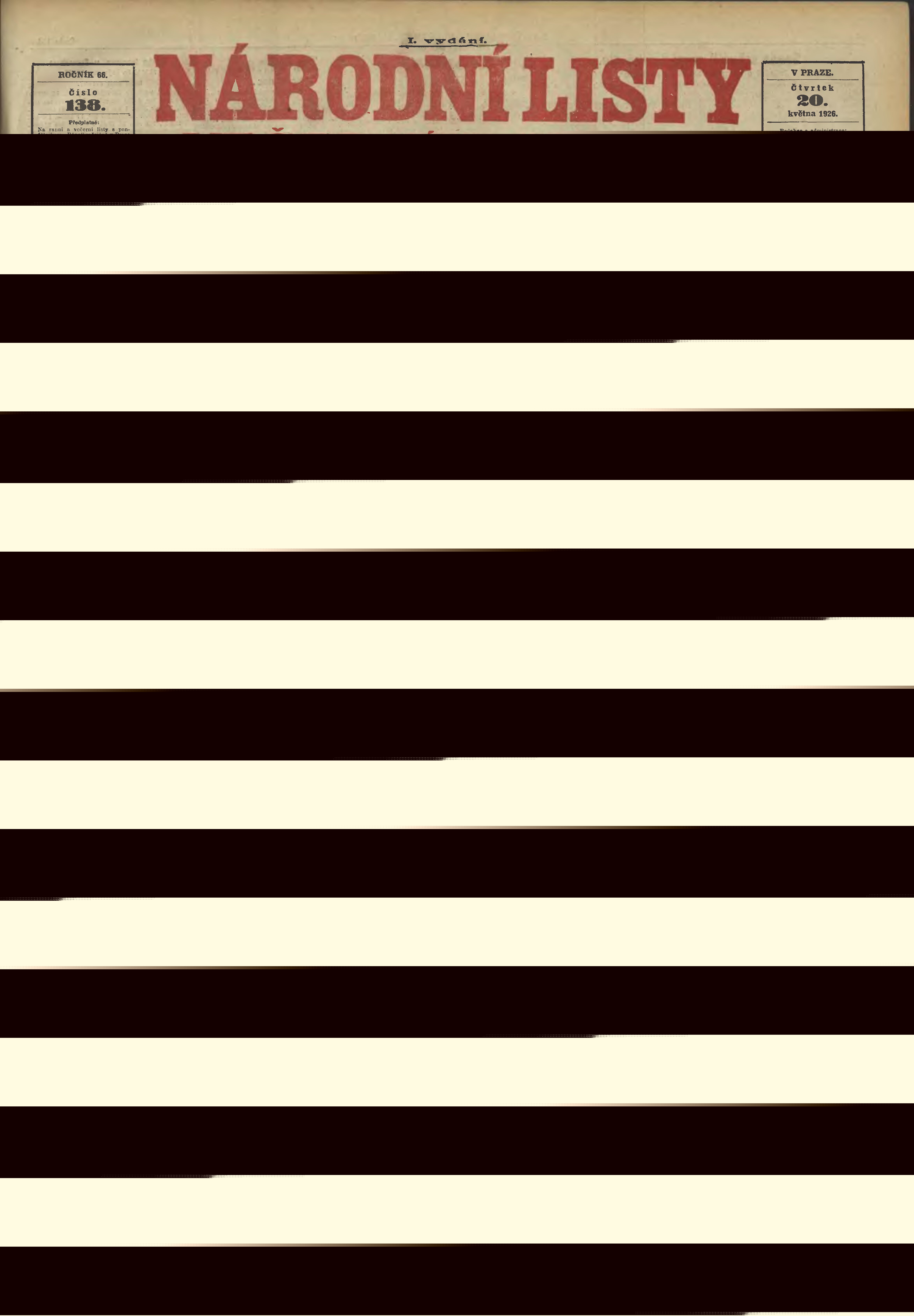 * Datum vydání výtisku: 20.5.1926 Číslo výtisku: 138 Poznámky k výtisku: večerní vydání;