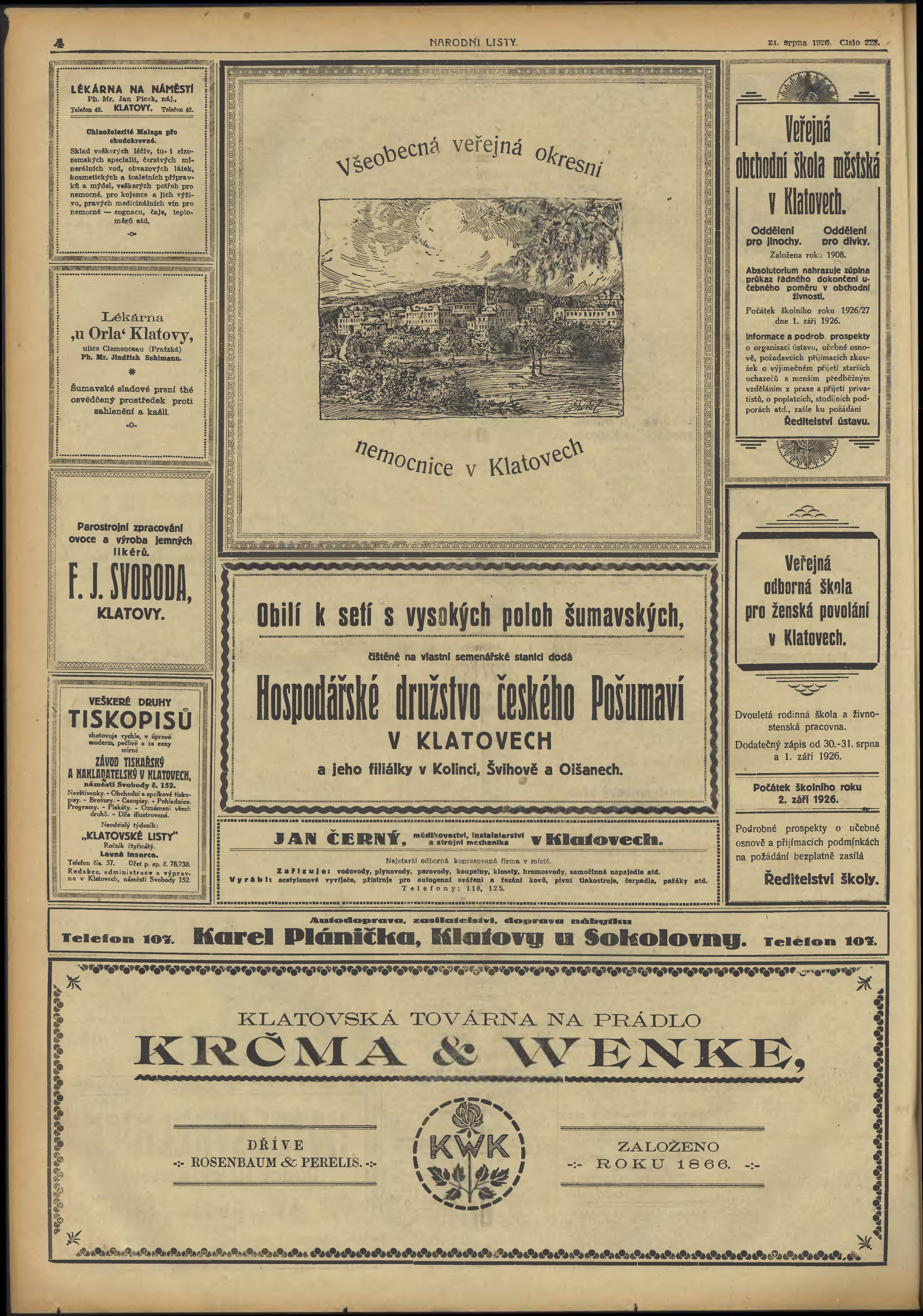 * Datum vydání výtisku: 21.8.1926 Číslo výtisku: 228 Typ výtisku: příloha