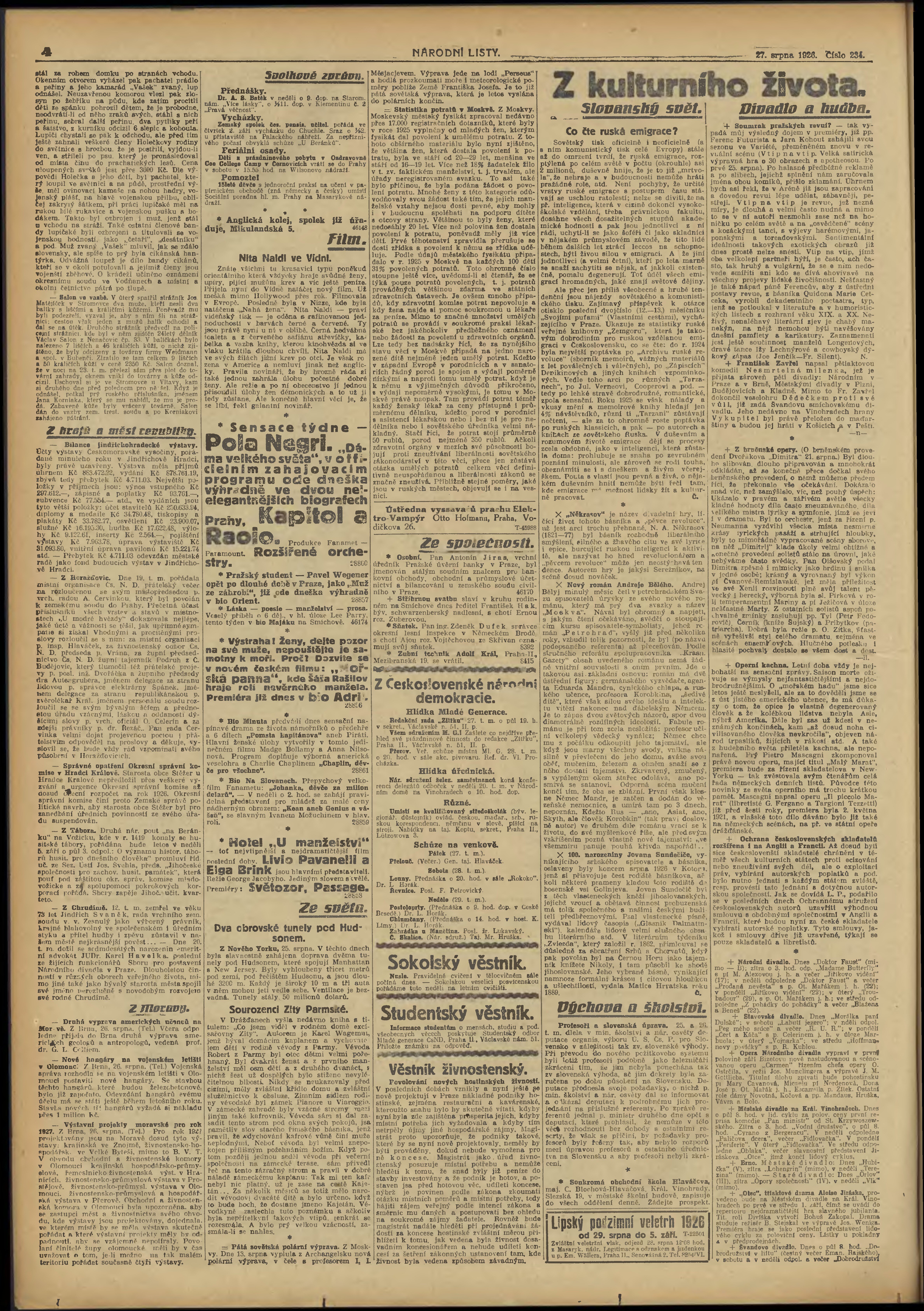 * Datum vydání výtisku: 27.8.1926 Číslo výtisku: 234