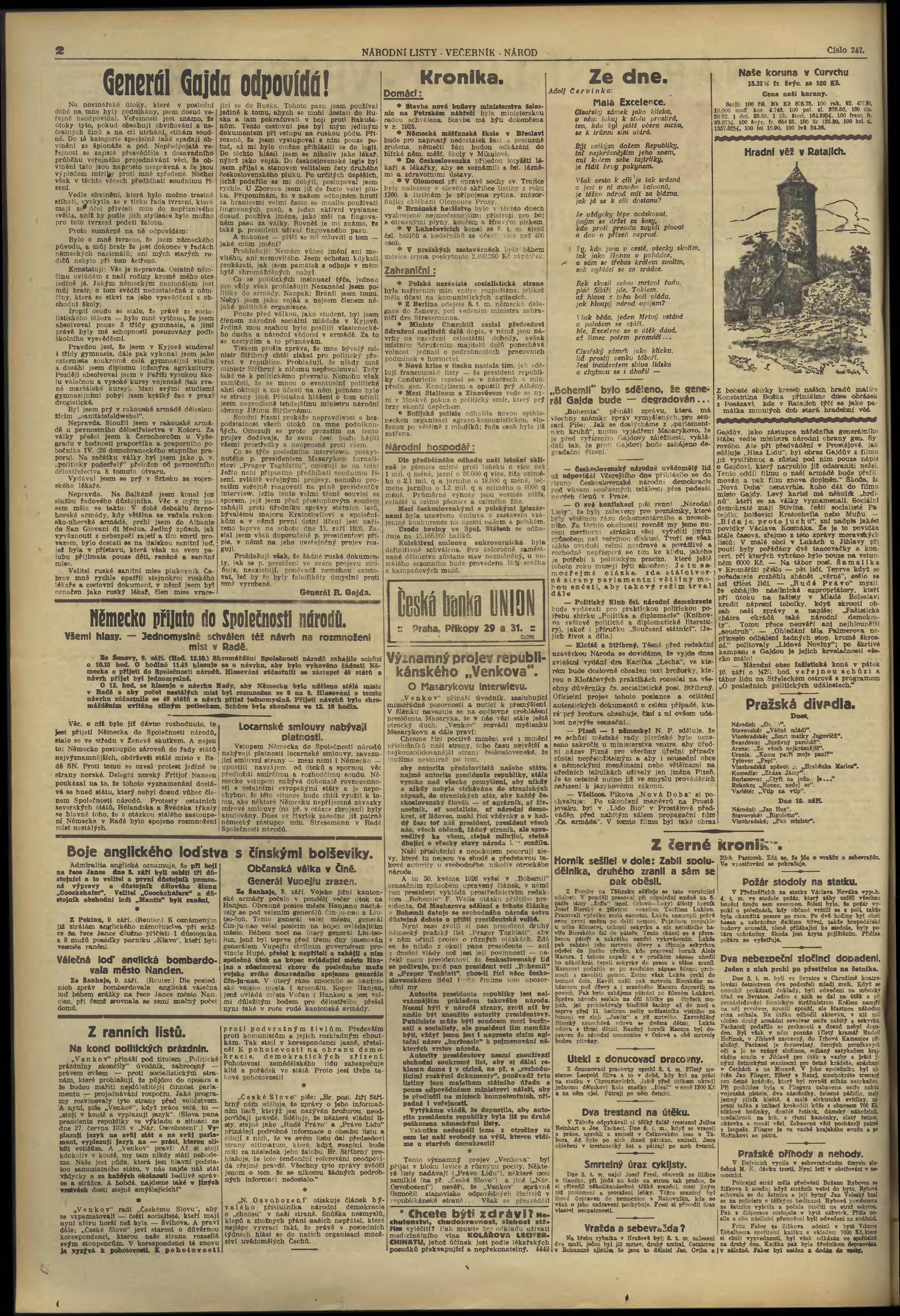 * Datum vydání výtisku: 9.9.1926 Číslo výtisku: 247 Poznámky k výtisku: večerní vydání;