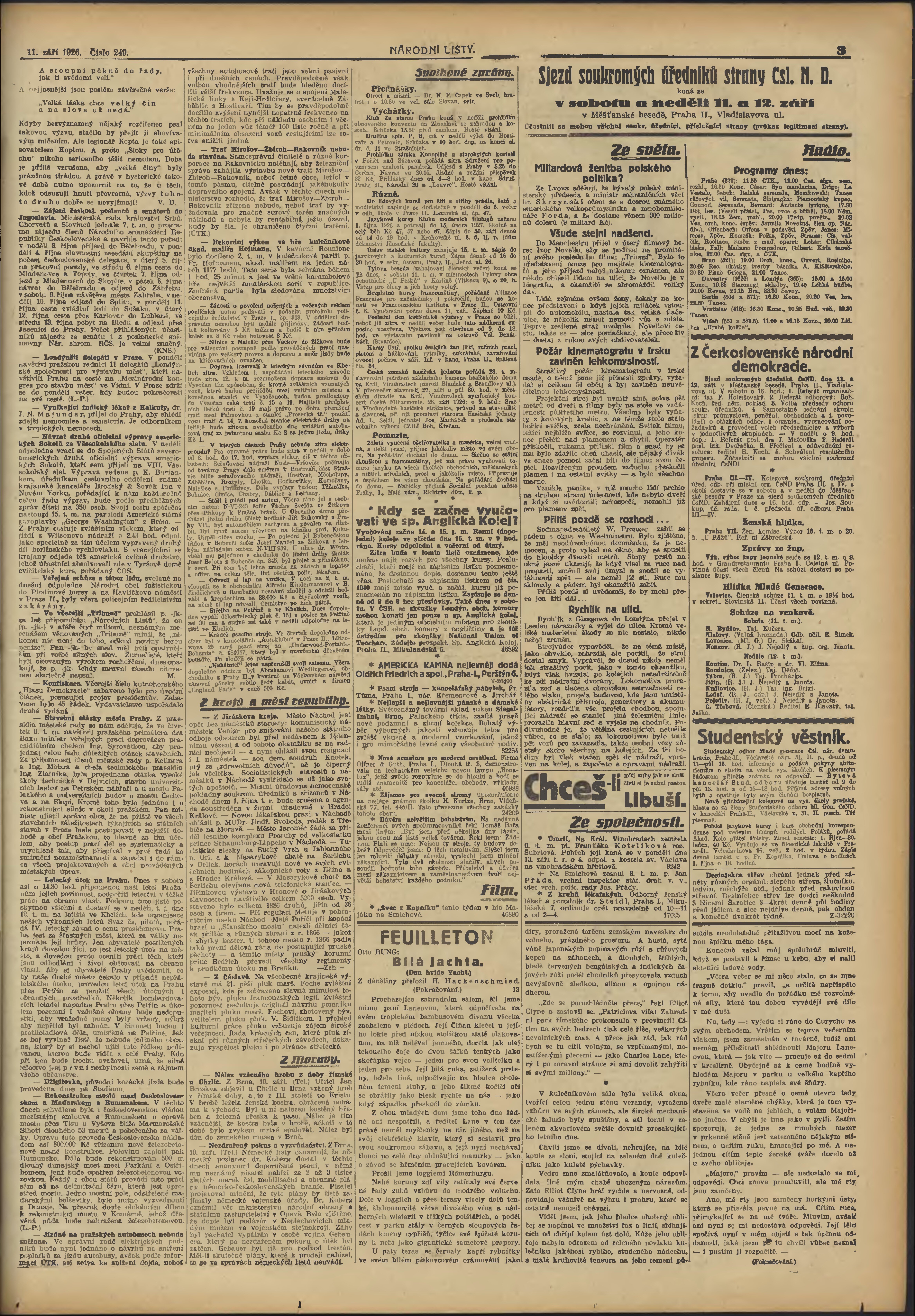 * Datum vydání výtisku: 11.9.1926 Číslo výtisku: 249